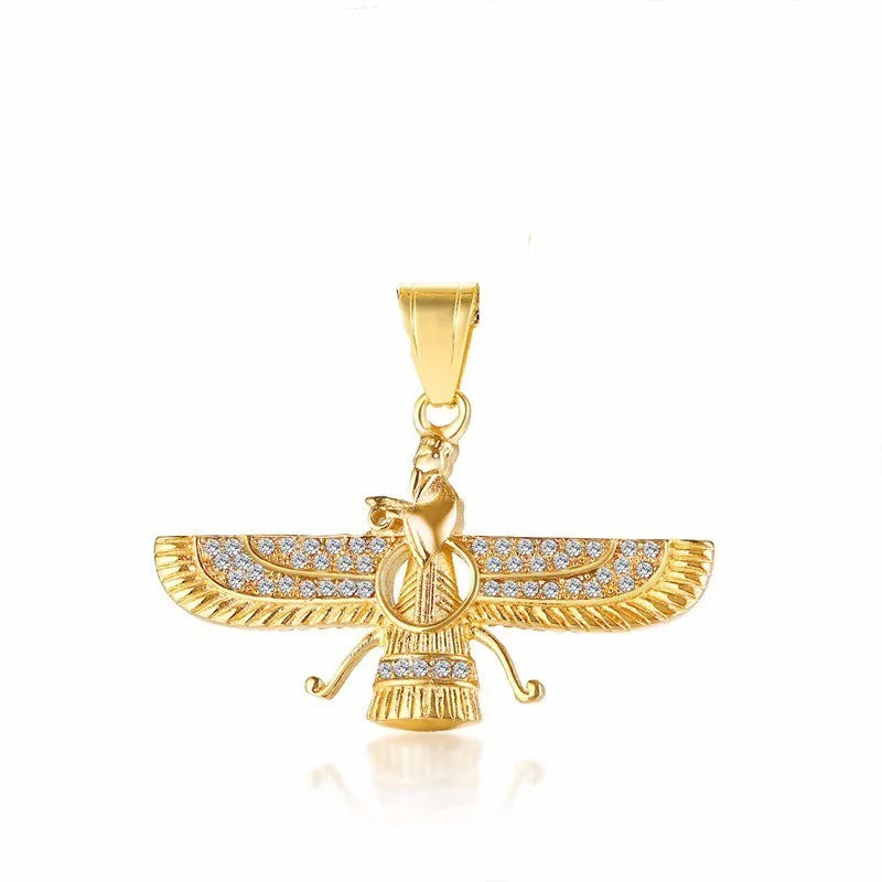 Ahura Mazda Zoroastrian Farvahar Wing Necklace Pendant – Stainless Steel Achaemenian Religious Jewelry for Men