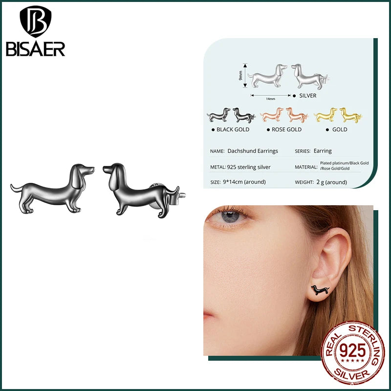Celebrate your love for pets with these adorable BISAER sterling silver dachshund ear buckles — cute, hypoallergenic, and perfect for adding a playful touch to any party or everyday look.