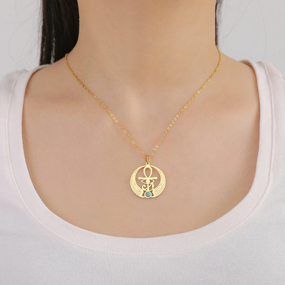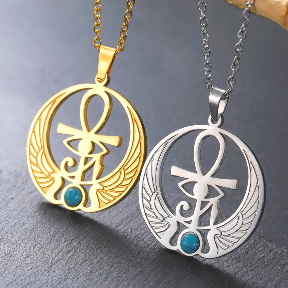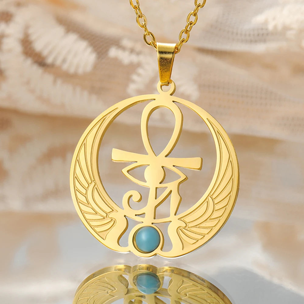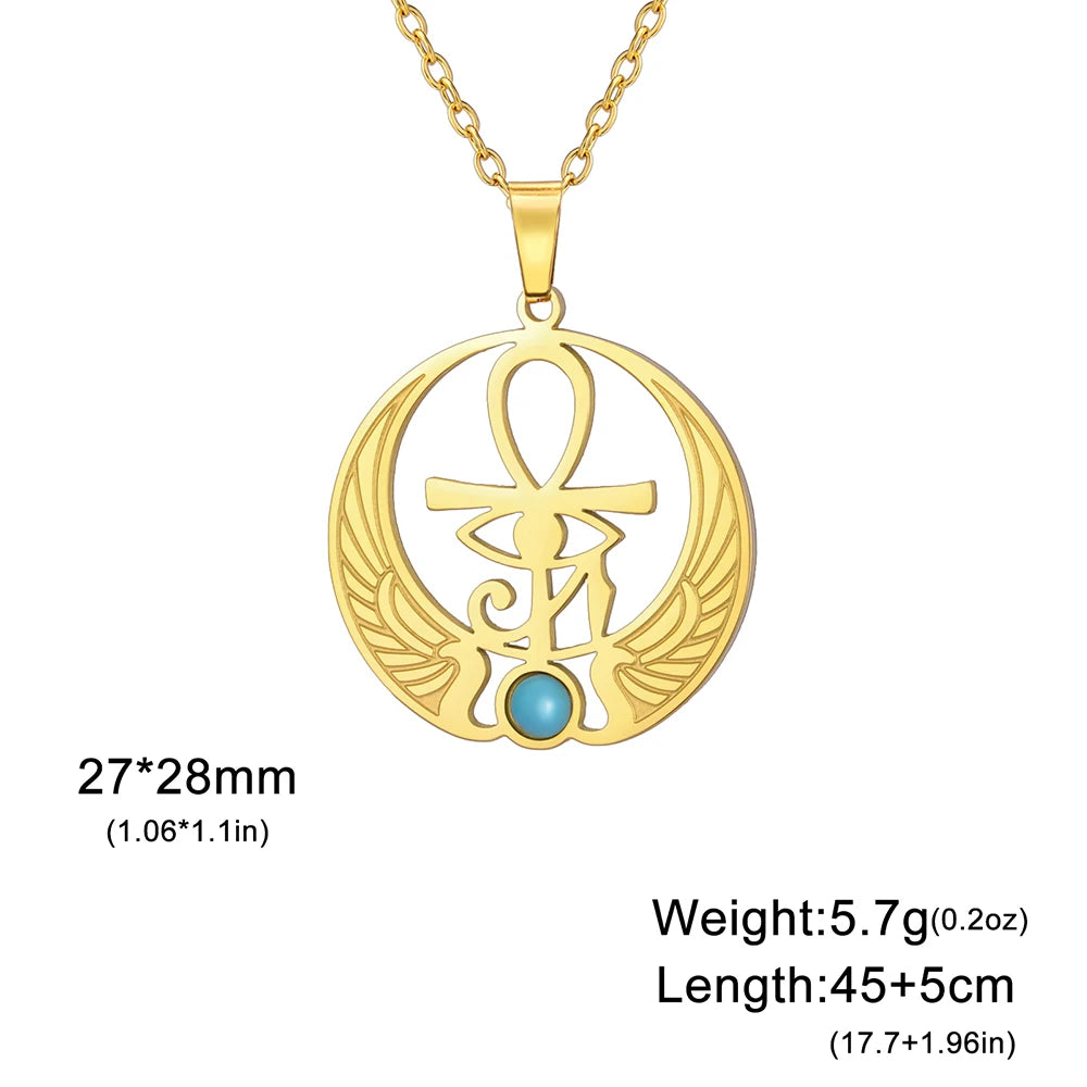 Dawapara Ankh Cross & Eye of Horus Necklace – Stainless Steel Egyptian Protection Amulet