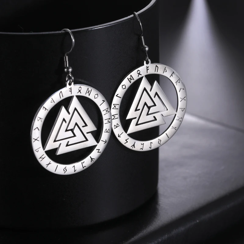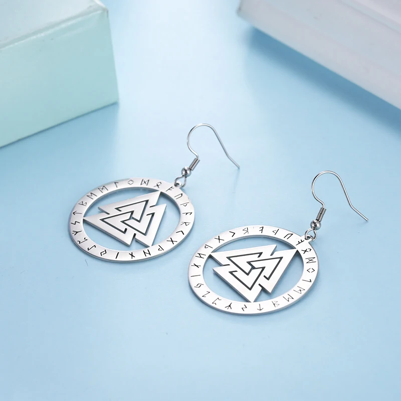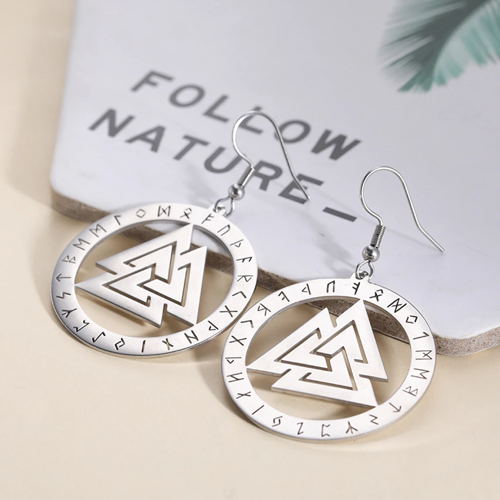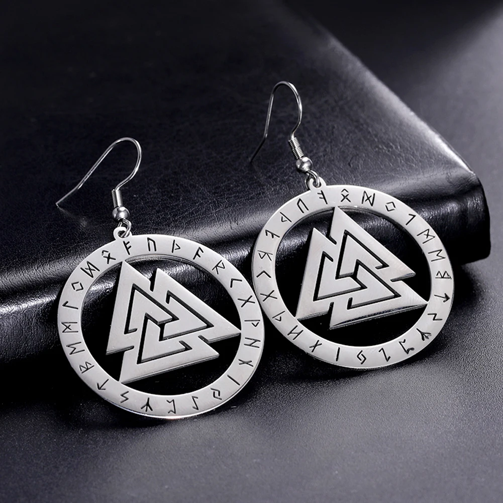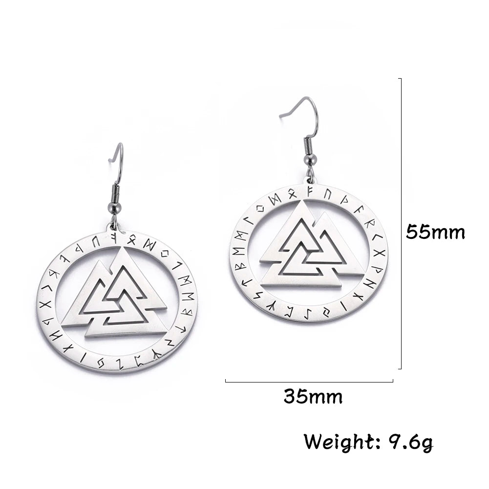 Dawapara Nordic Valknut Earrings – Odin Symbol Runes Circle Pendant Stainless Steel Jewelry