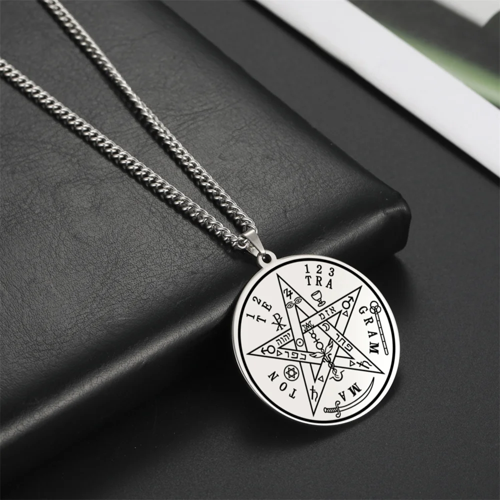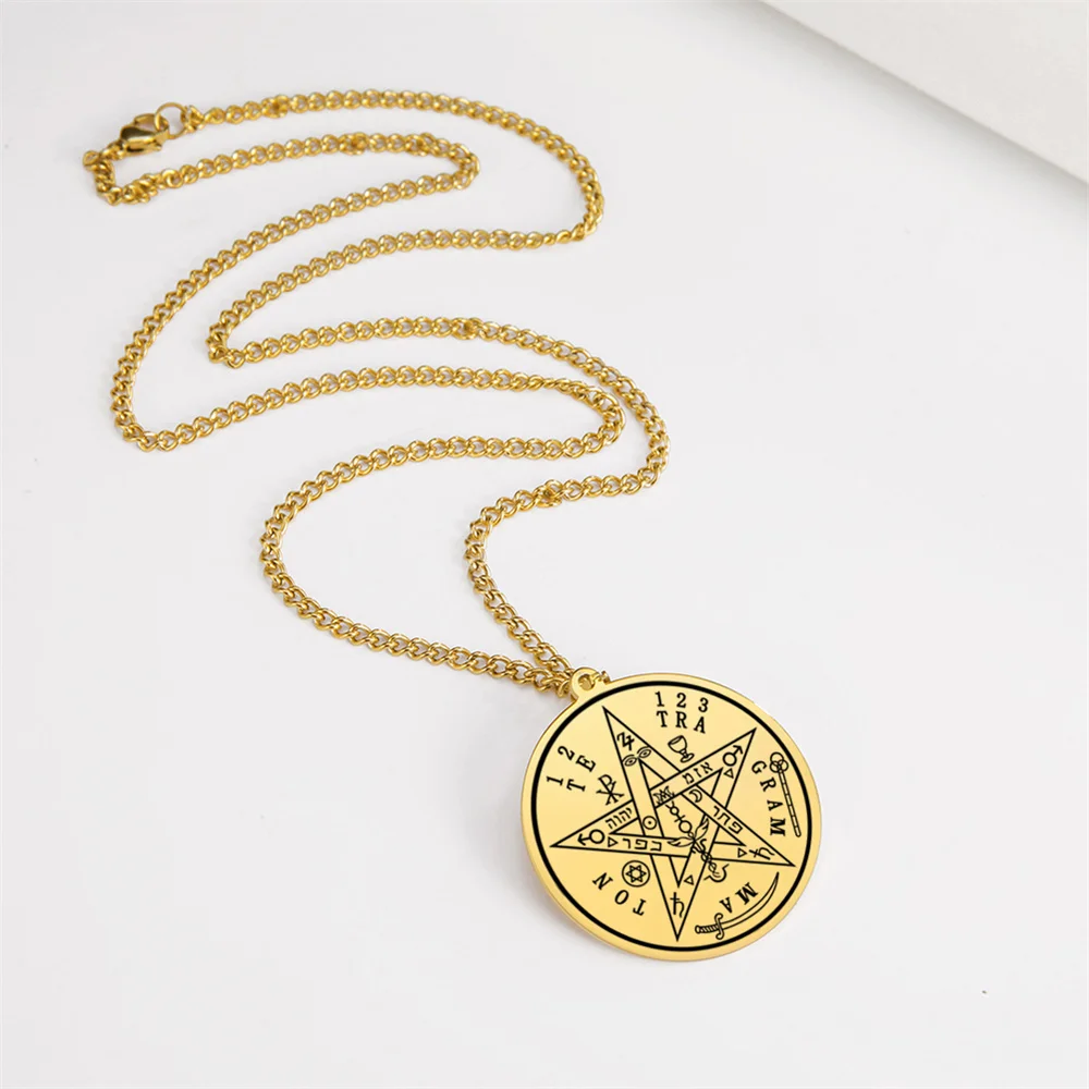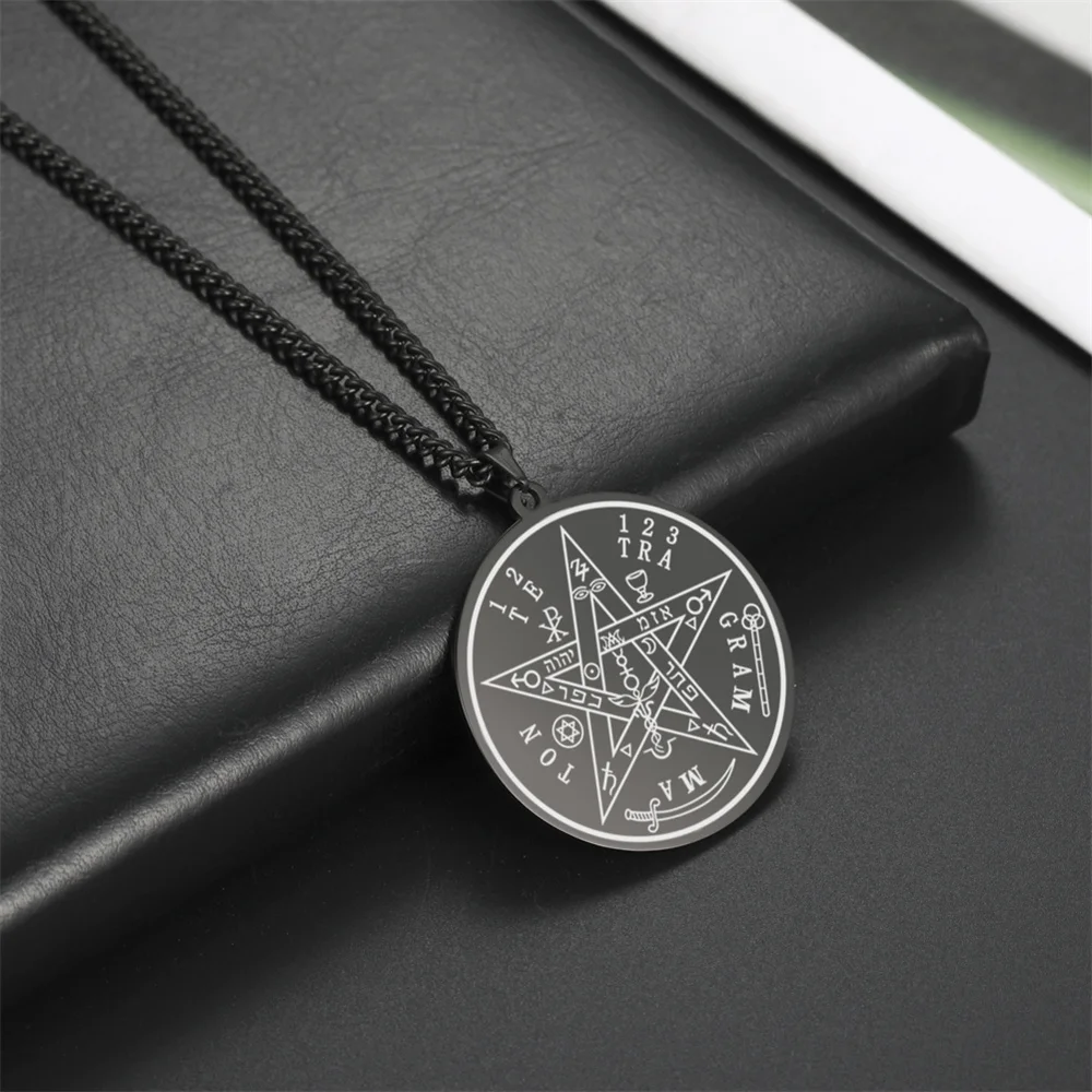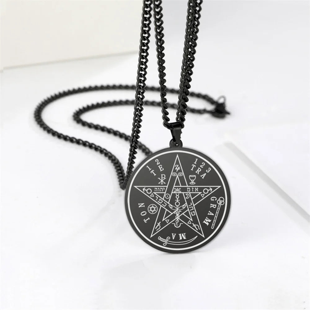 EUEAVAN Witchcraft Tetragrammaton Pentacle Necklace – Stainless Steel Protection Amulet