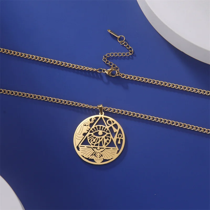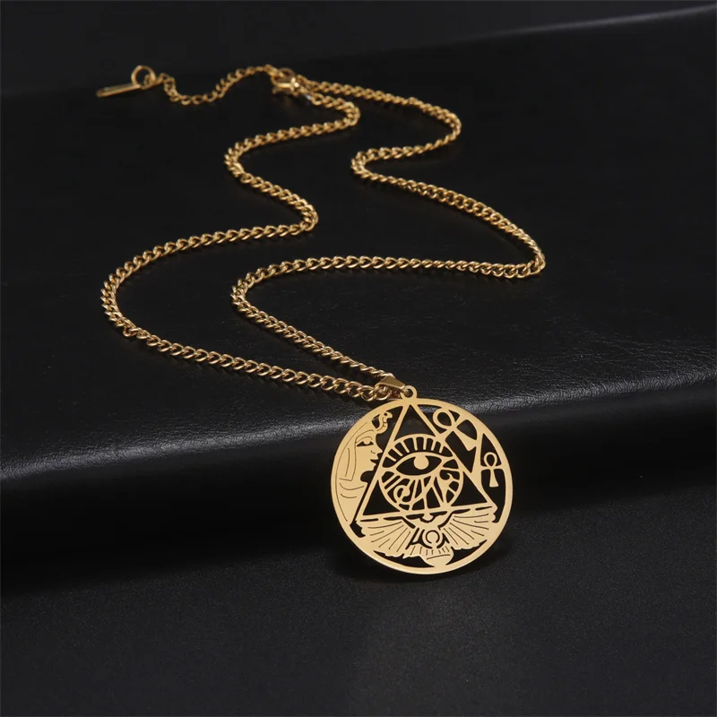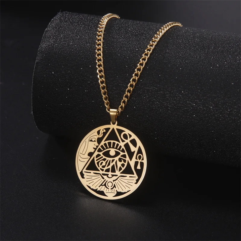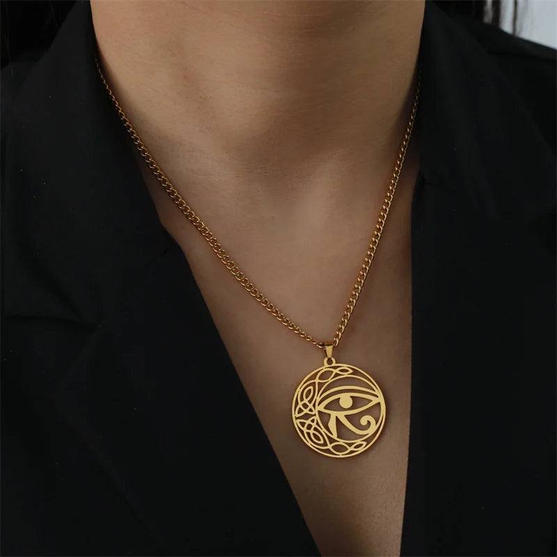 Eye of Horus Egypt Chain Necklace – Stainless Steel Ankh Cross Choker for Women & Men