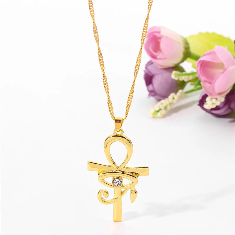 Elevate your style with this elegant Eye of Horus pendant necklace, featuring the sacred Ankh cross symbol. Designed as a chic choker, this religious-inspired piece combines ancient Egyptian spirituality with modern fashion—perfect for women who love meaningful jewelry.