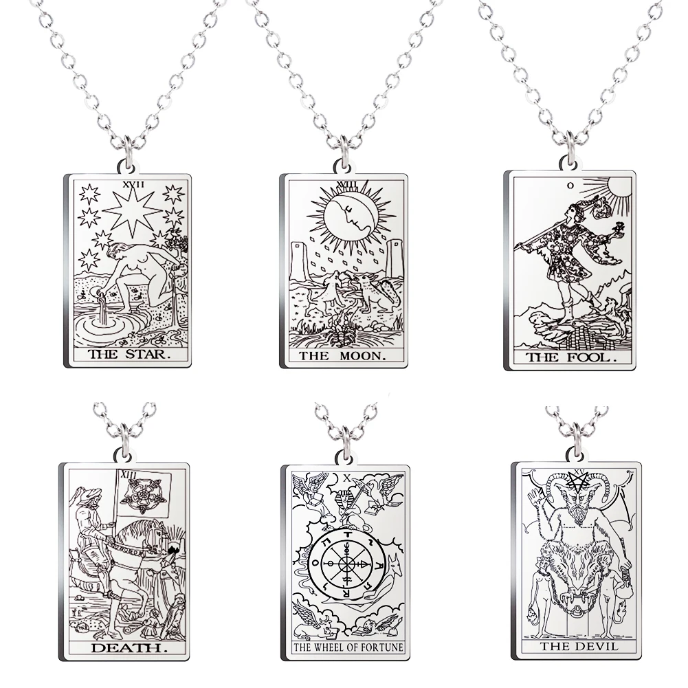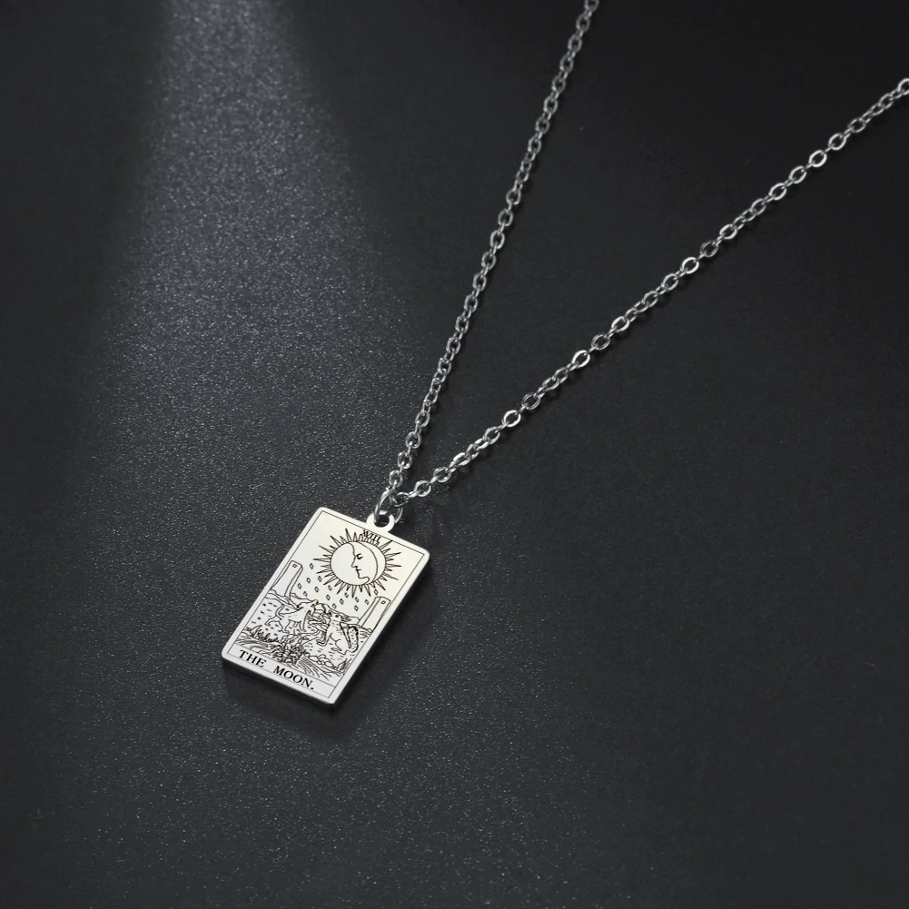LIKGREAT Tarot Card Necklace – Major Arcana Stainless Steel Pendant for Women & Men