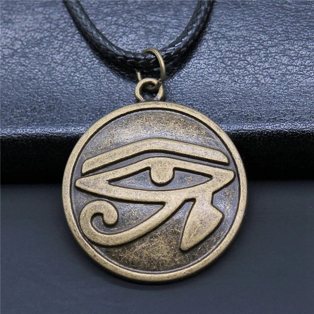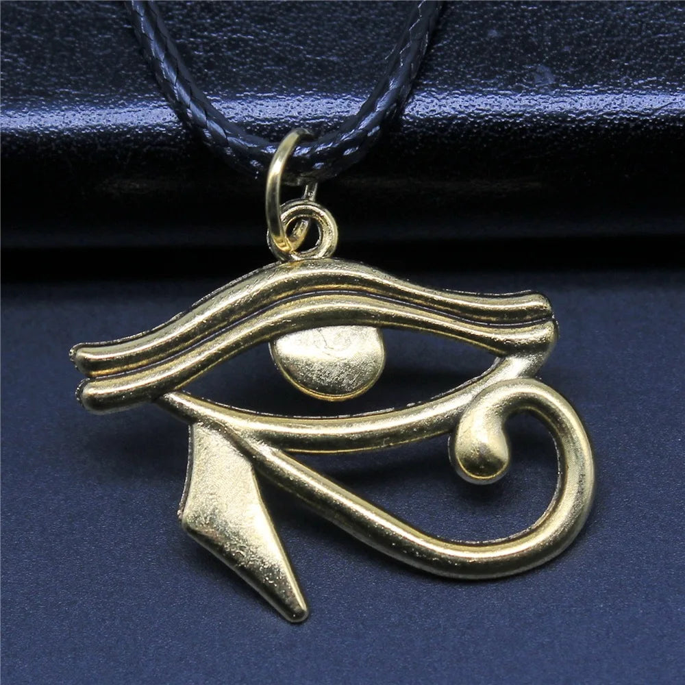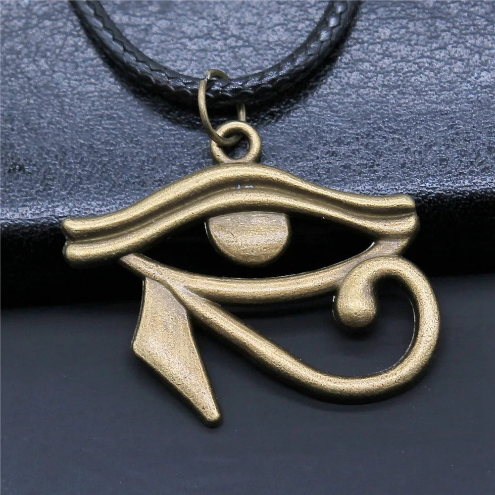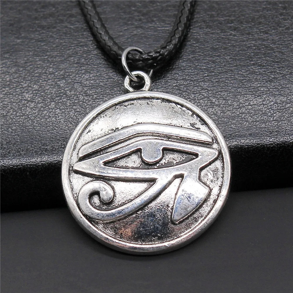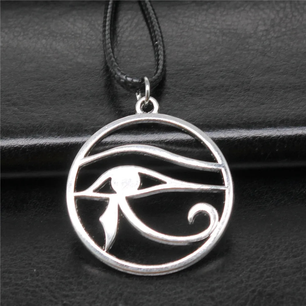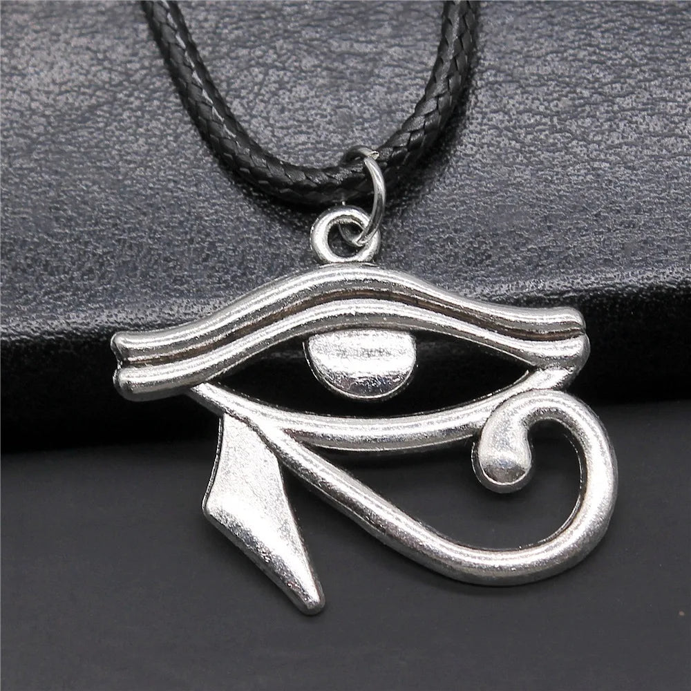 Mysterious Ancient Egypt Mythology Pharaoh Eye of Horus Pendant – Faux Black Leather Rope Chain Necklace