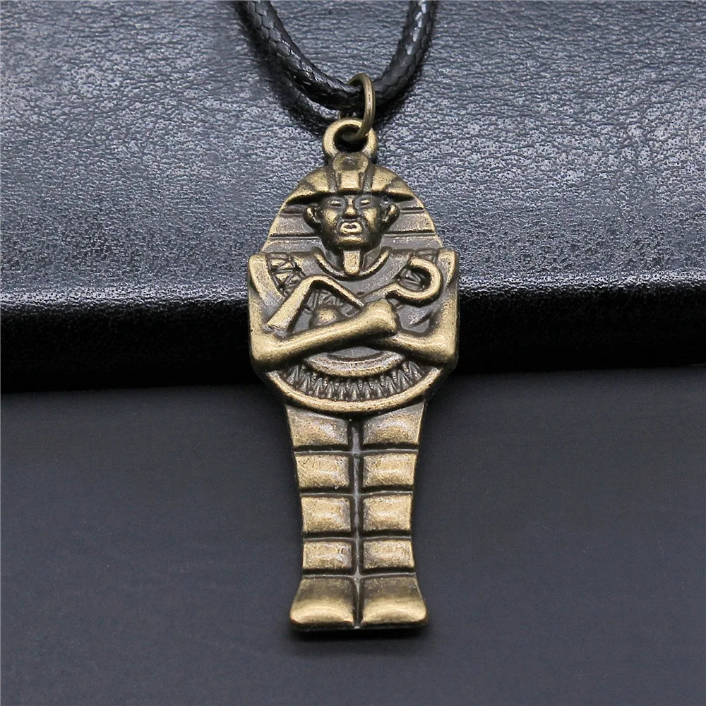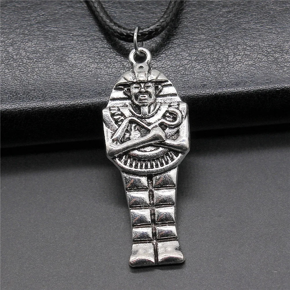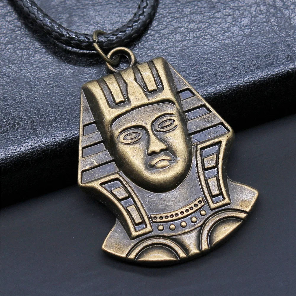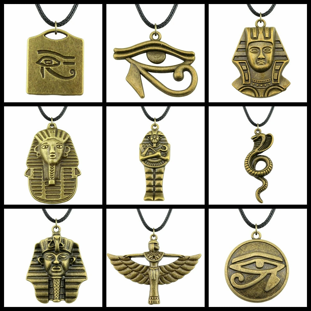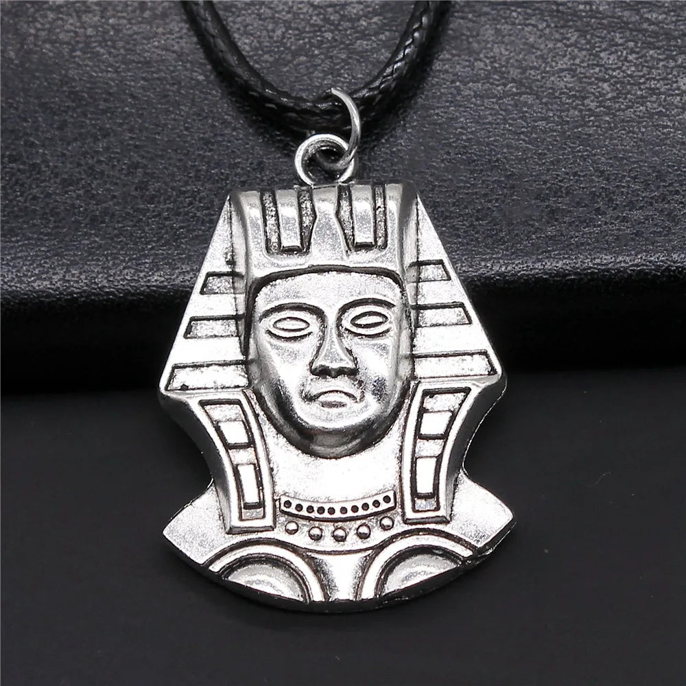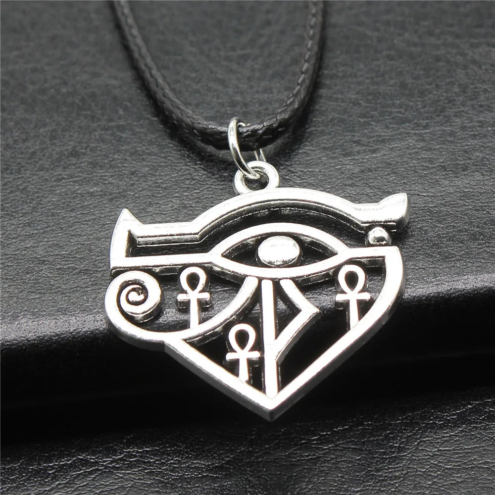 Mysterious Ancient Egypt Mythology Pharaoh Eye of Horus Pendant – Faux Black Leather Rope Chain Necklace