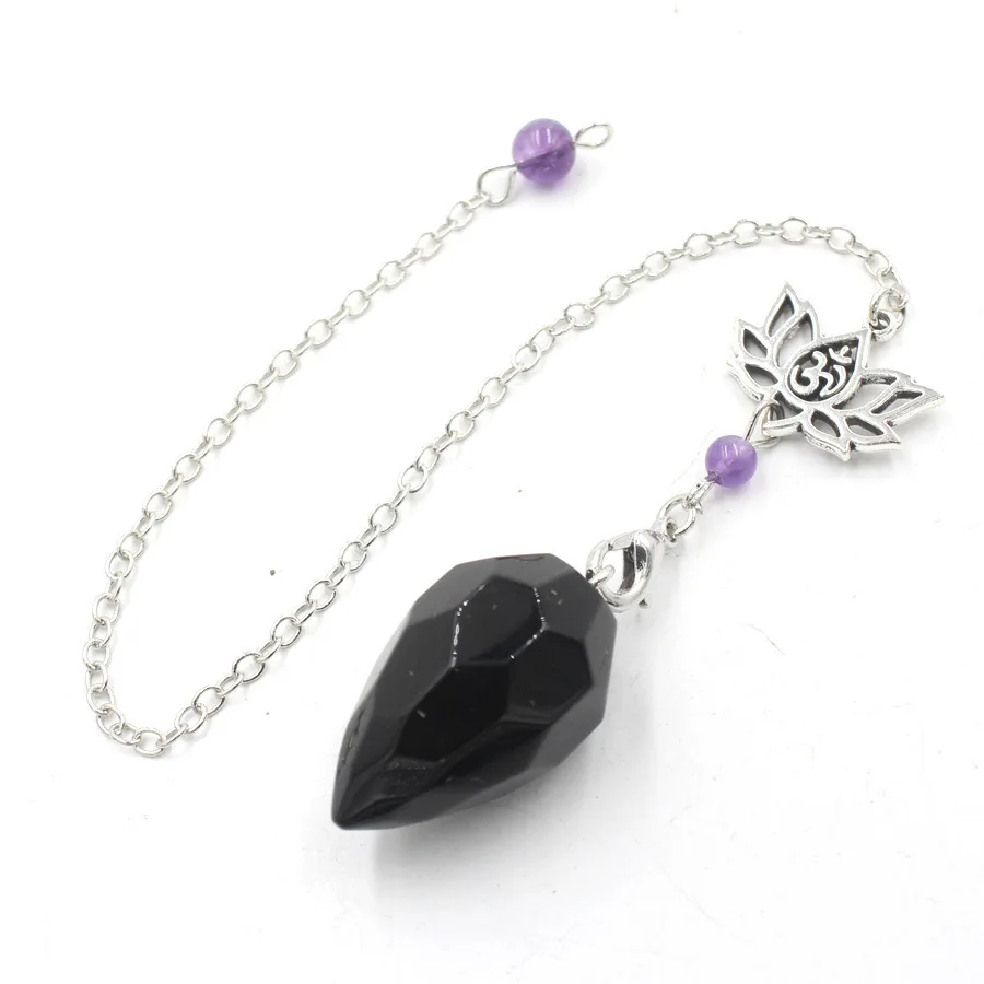 Enhance your spiritual practice with these natural stone pendulum necklaces — perfect for dowsing, energy work, and divination. Choose from White Crystal, Tiger Eye, Black Obsidian, or Clear Quartz, each crafted into a pointed pendulum and accented with an "OM" symbol for added spiritual depth.
