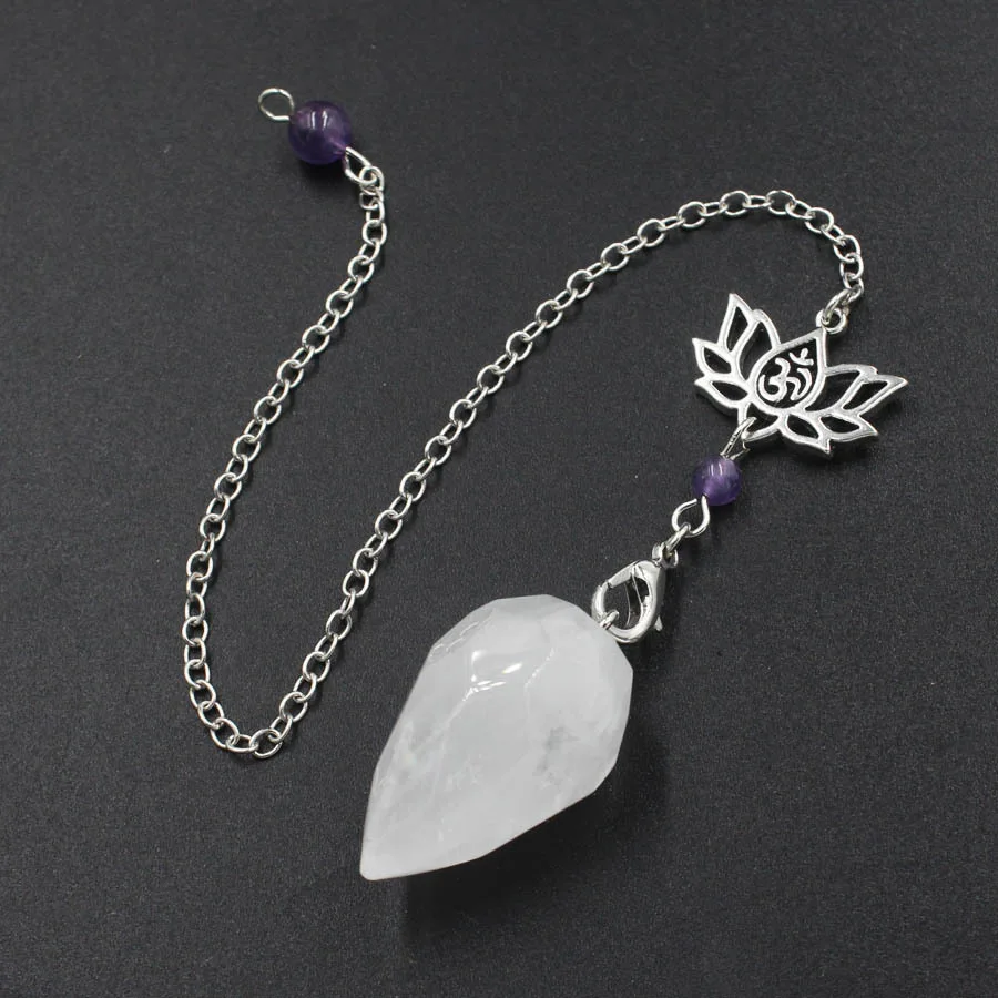 Natural Stone Crystal Pendulum Necklace – White Crystal, Tiger Eye, Obsidian, Quartz for Dowsing & Divination (Model X229)
