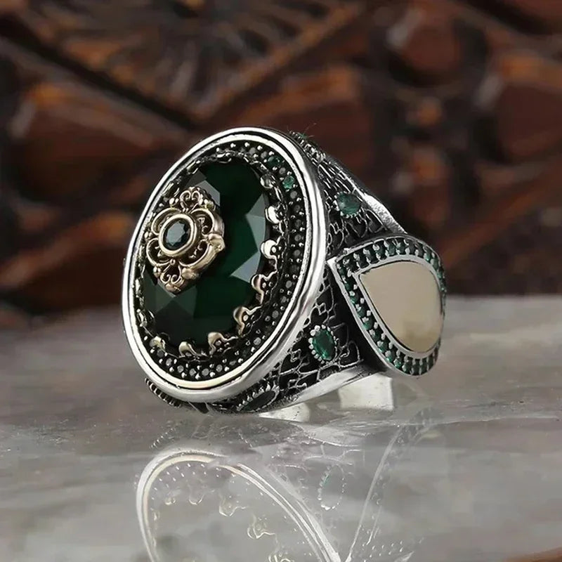 New Inlaid Emerald Men’s Luxury Ring – Retro Domineering Style for Banquet & Party
