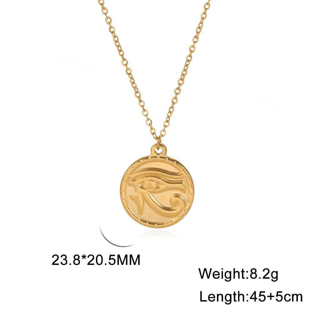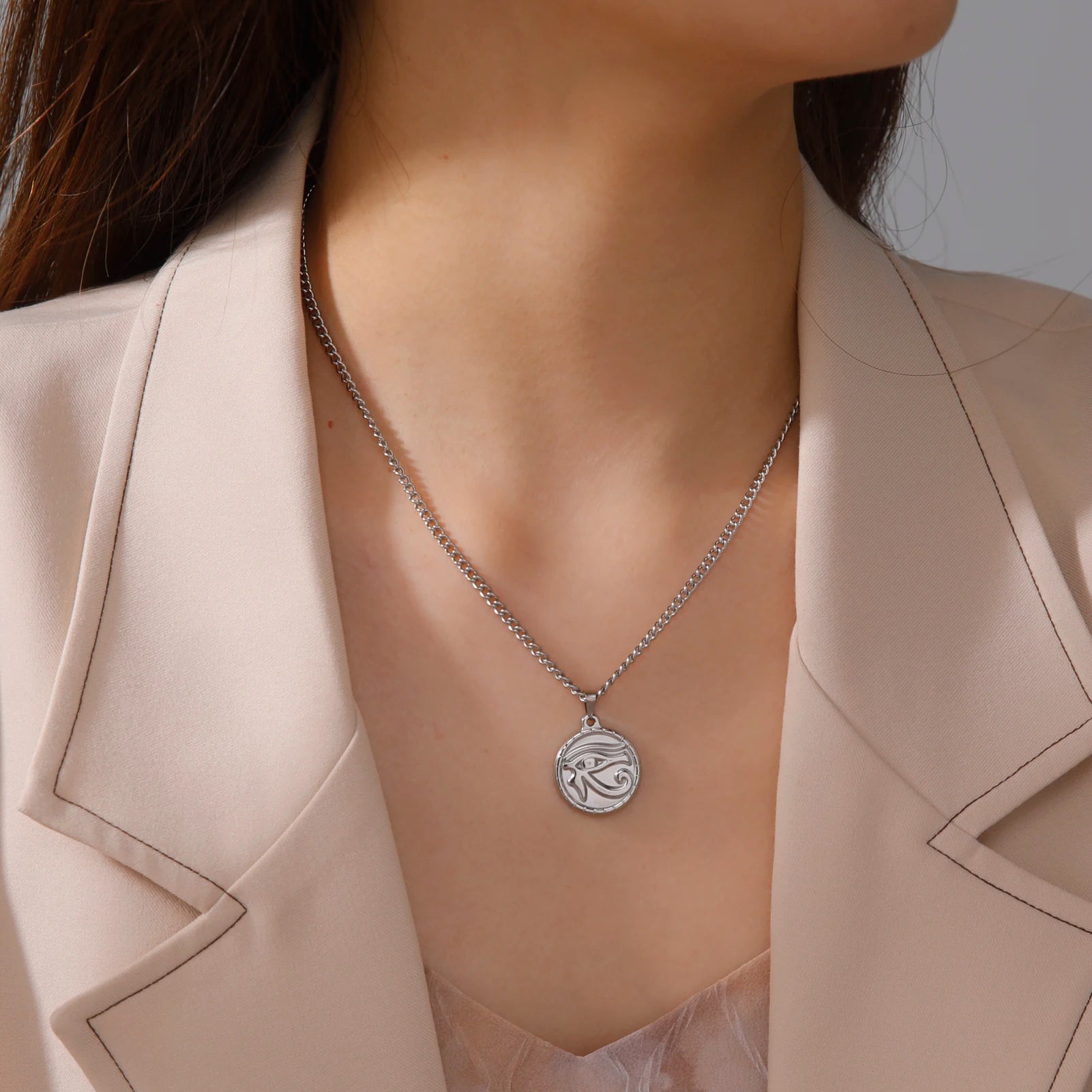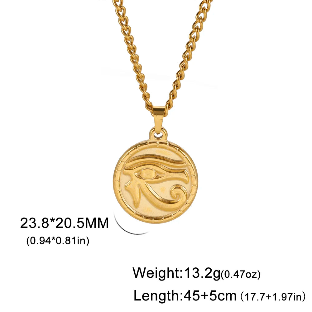 Embrace the mystery and protection of ancient Egypt with this Skyrim-inspired Eye of Horus (Ra Udjat) pendant necklace. Featuring a bold gold-tone stainless steel design and a thick chain, this powerful amulet is a stylish and symbolic accessory for women.
