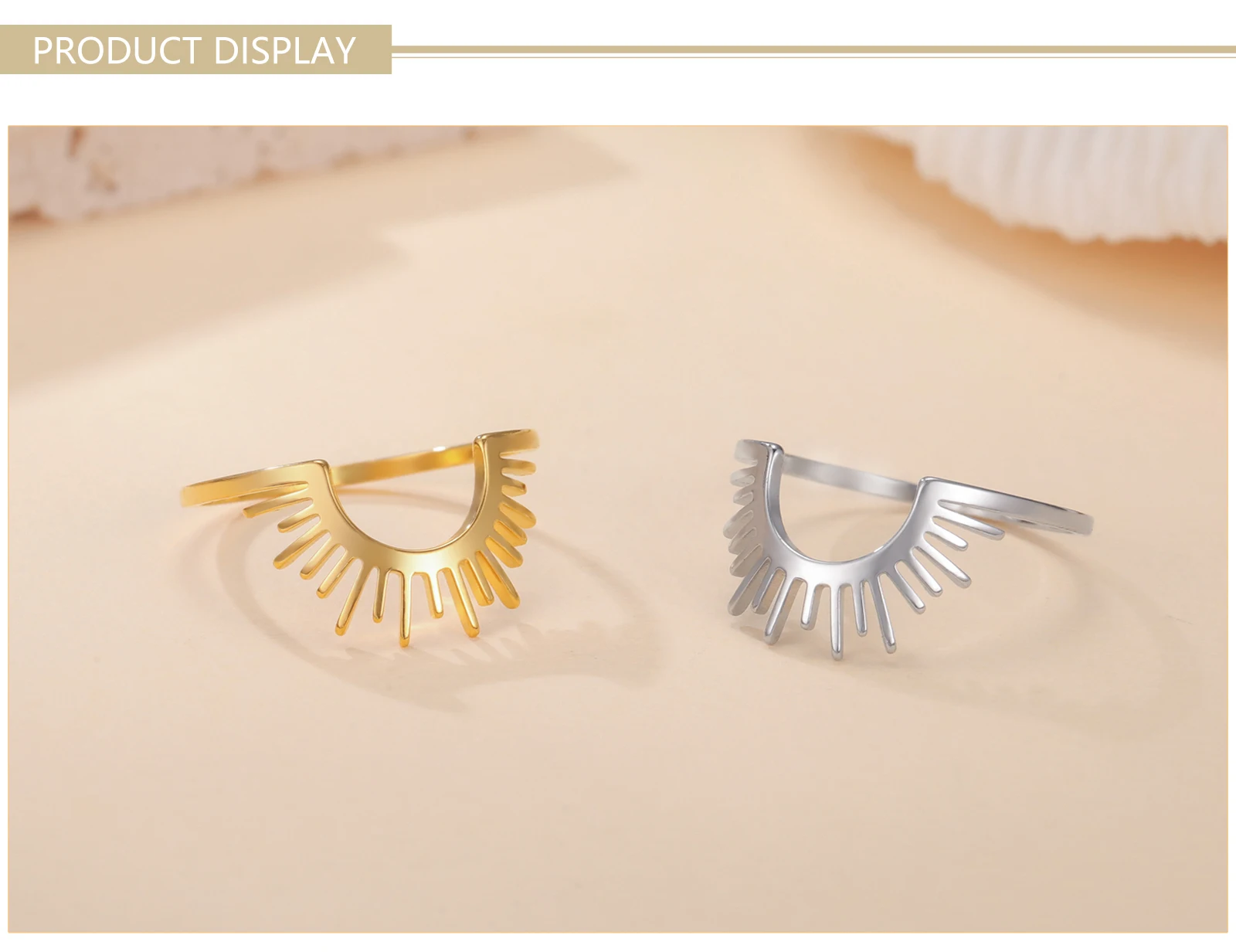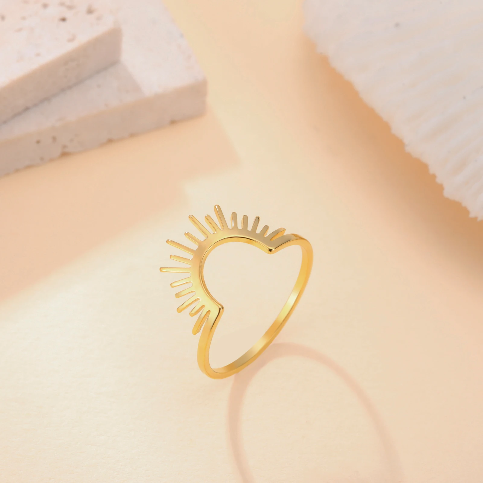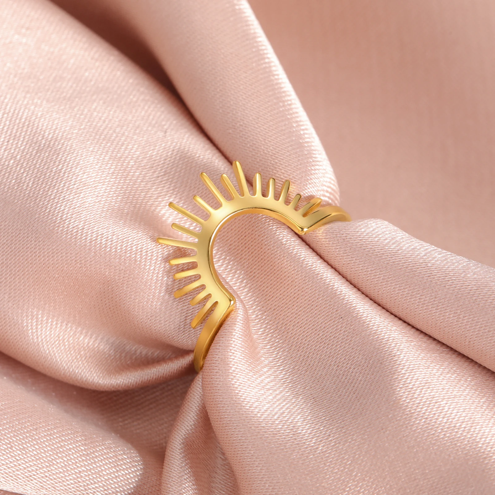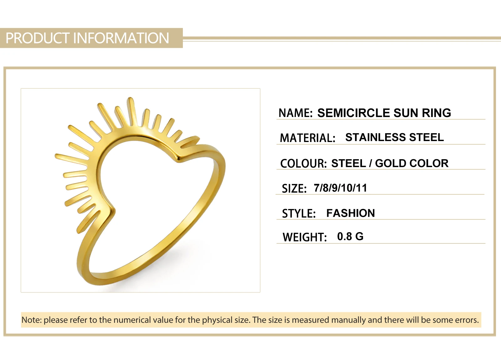 Skyrim Semicircle Sun Ring for Women – Gold Color Stainless Steel Casual Jewelry