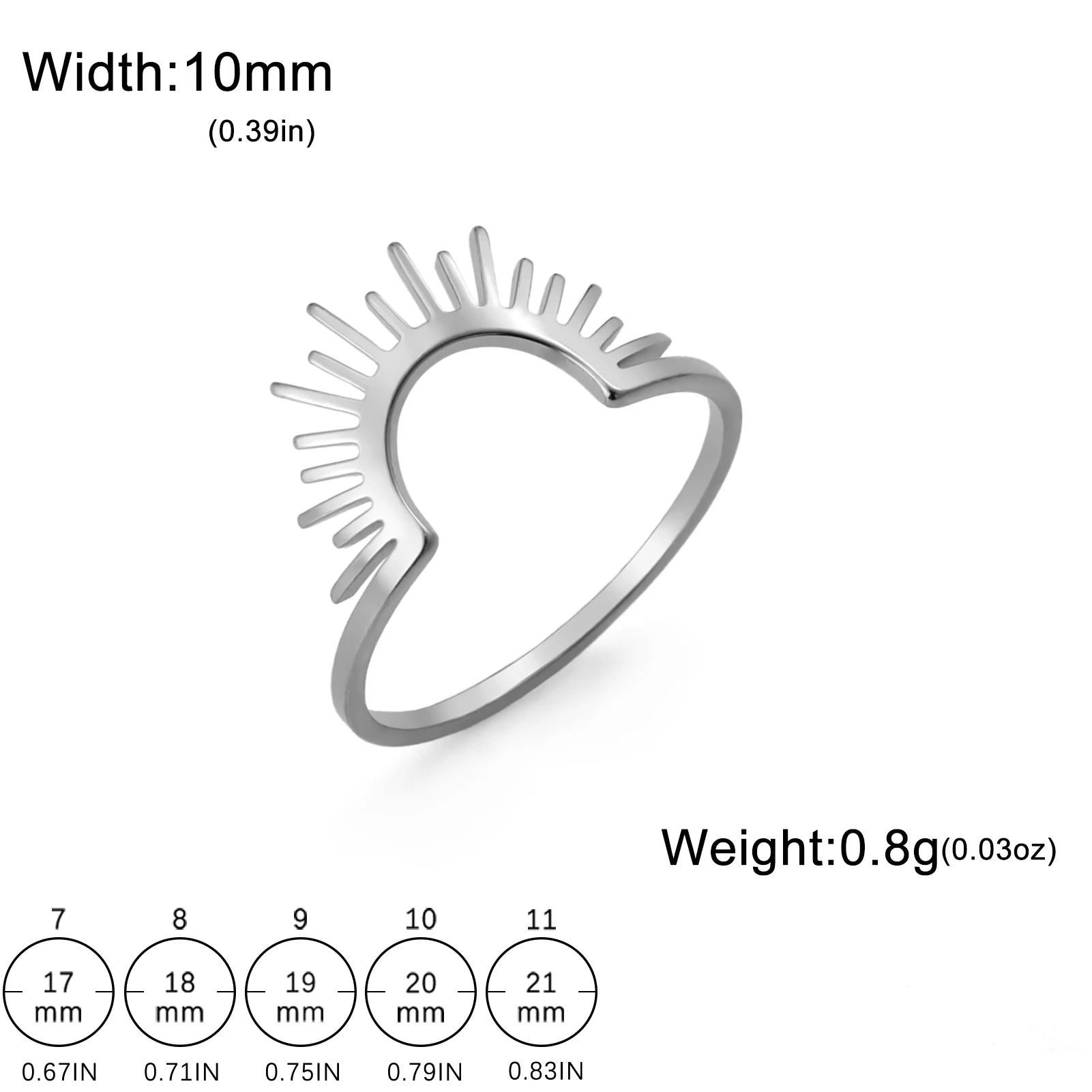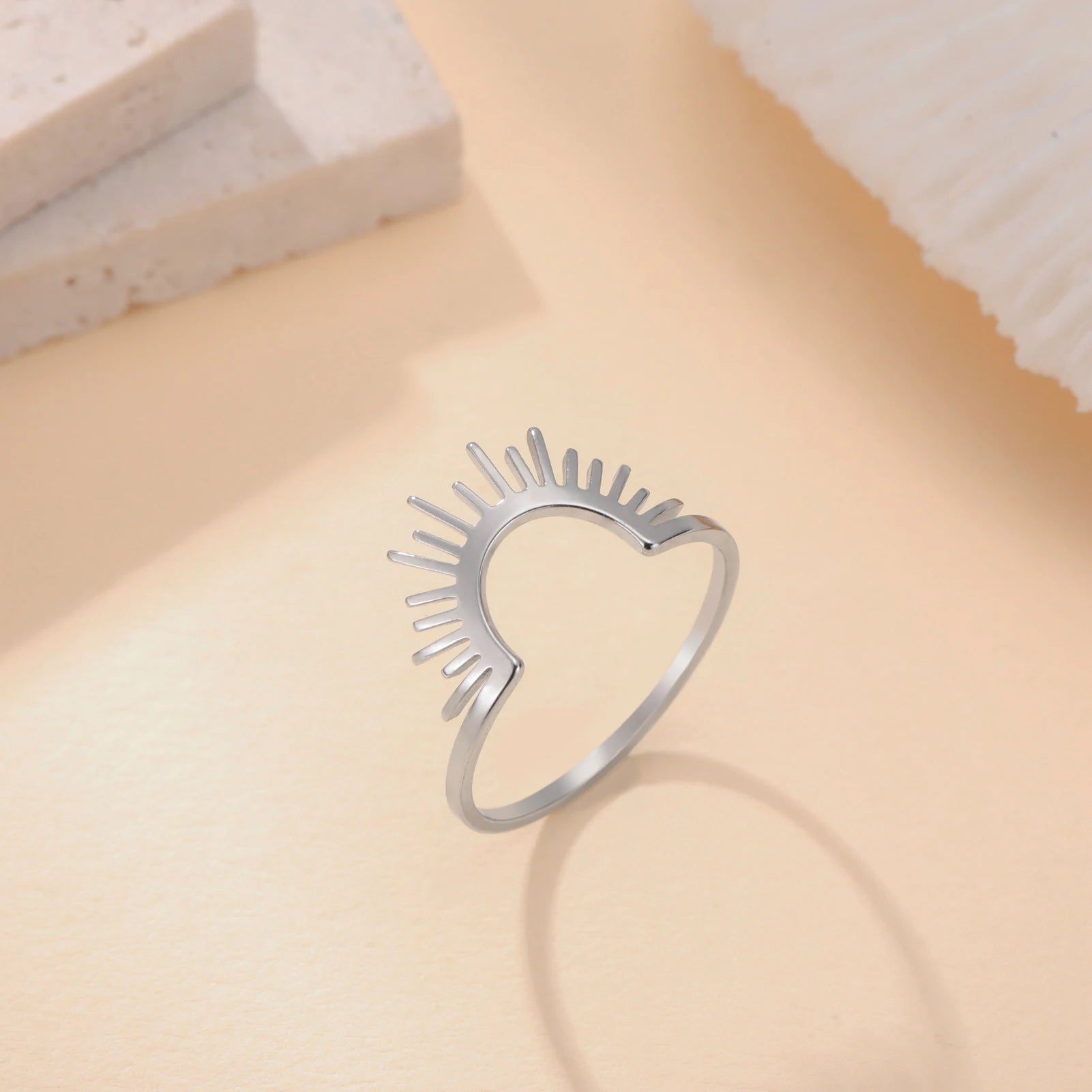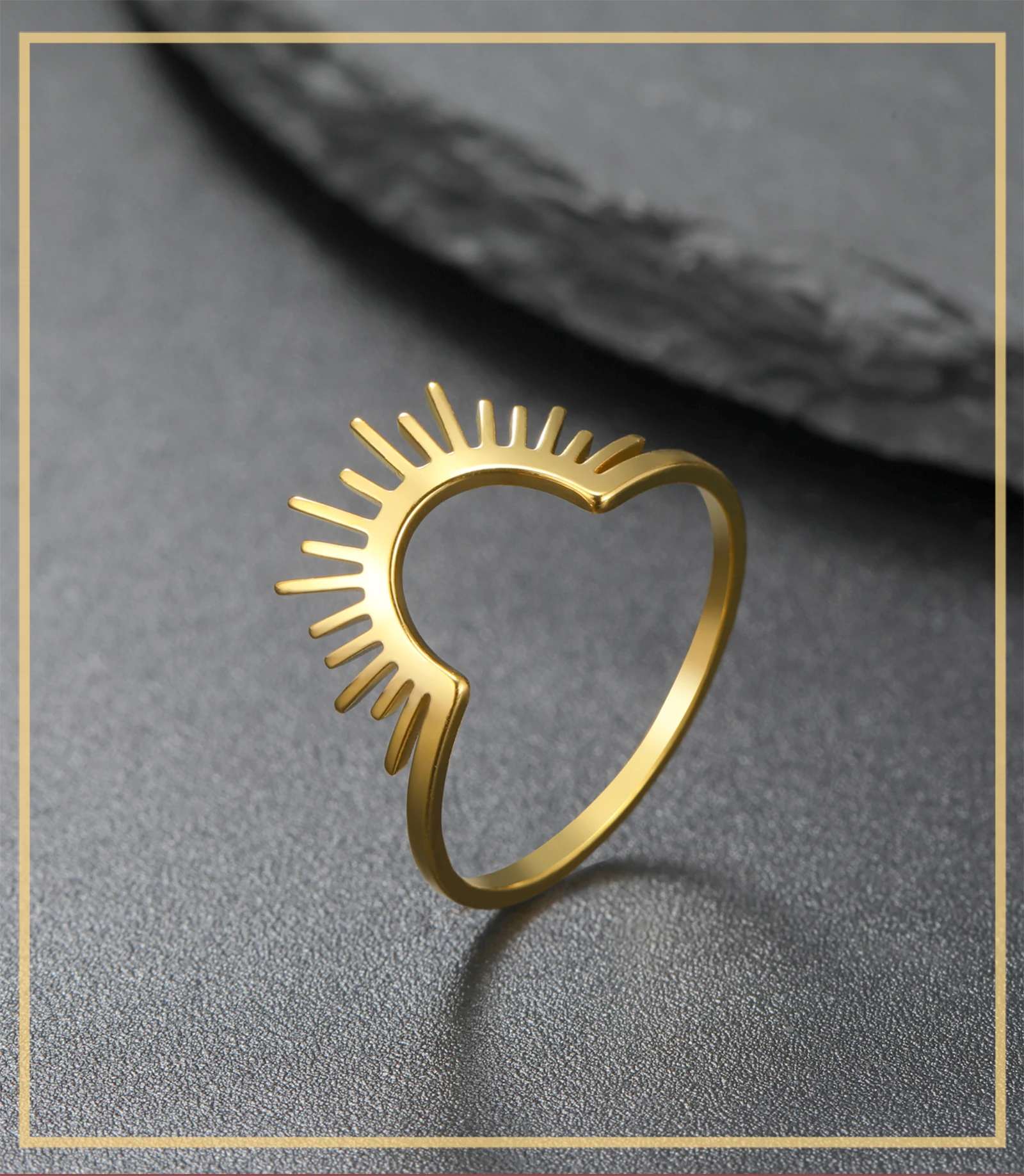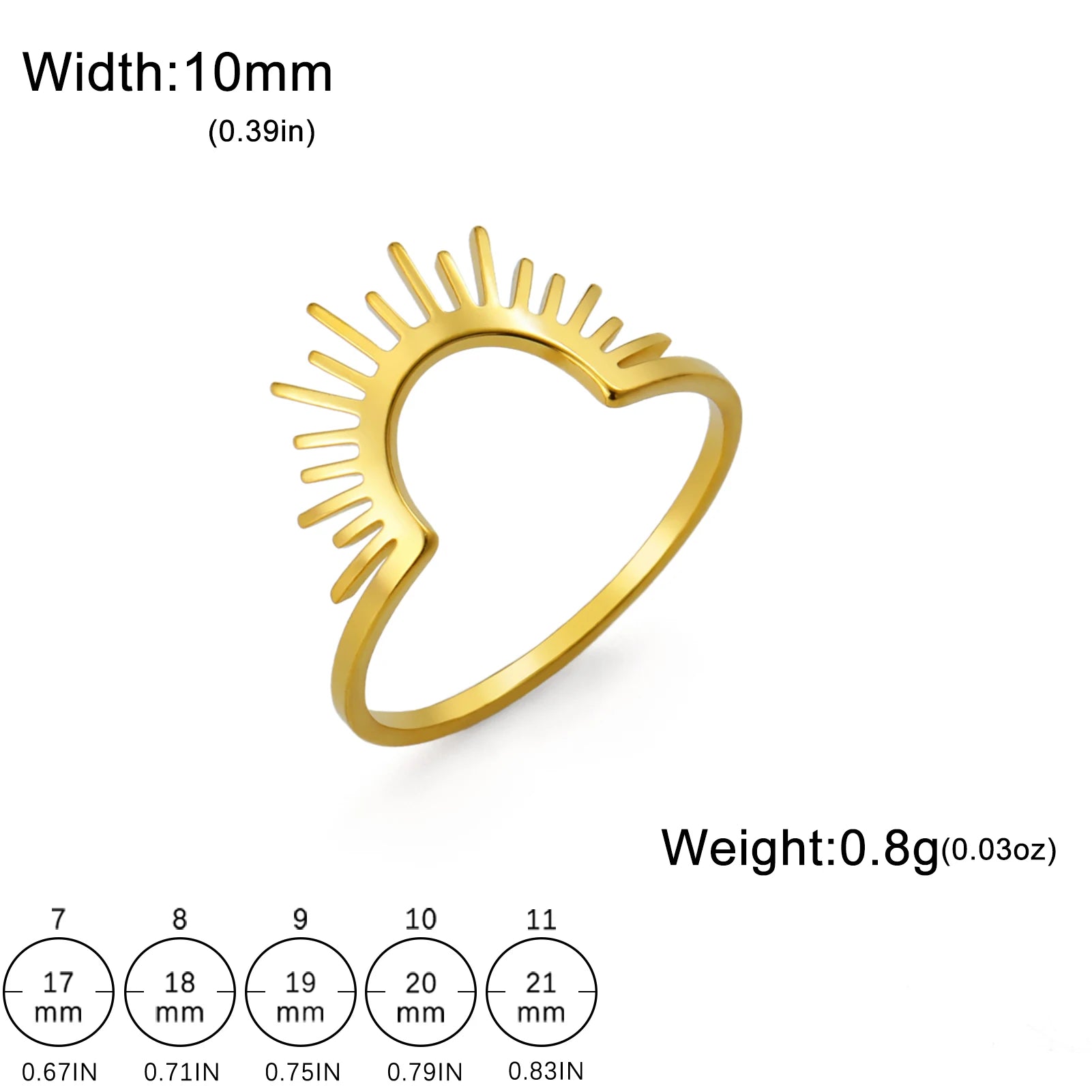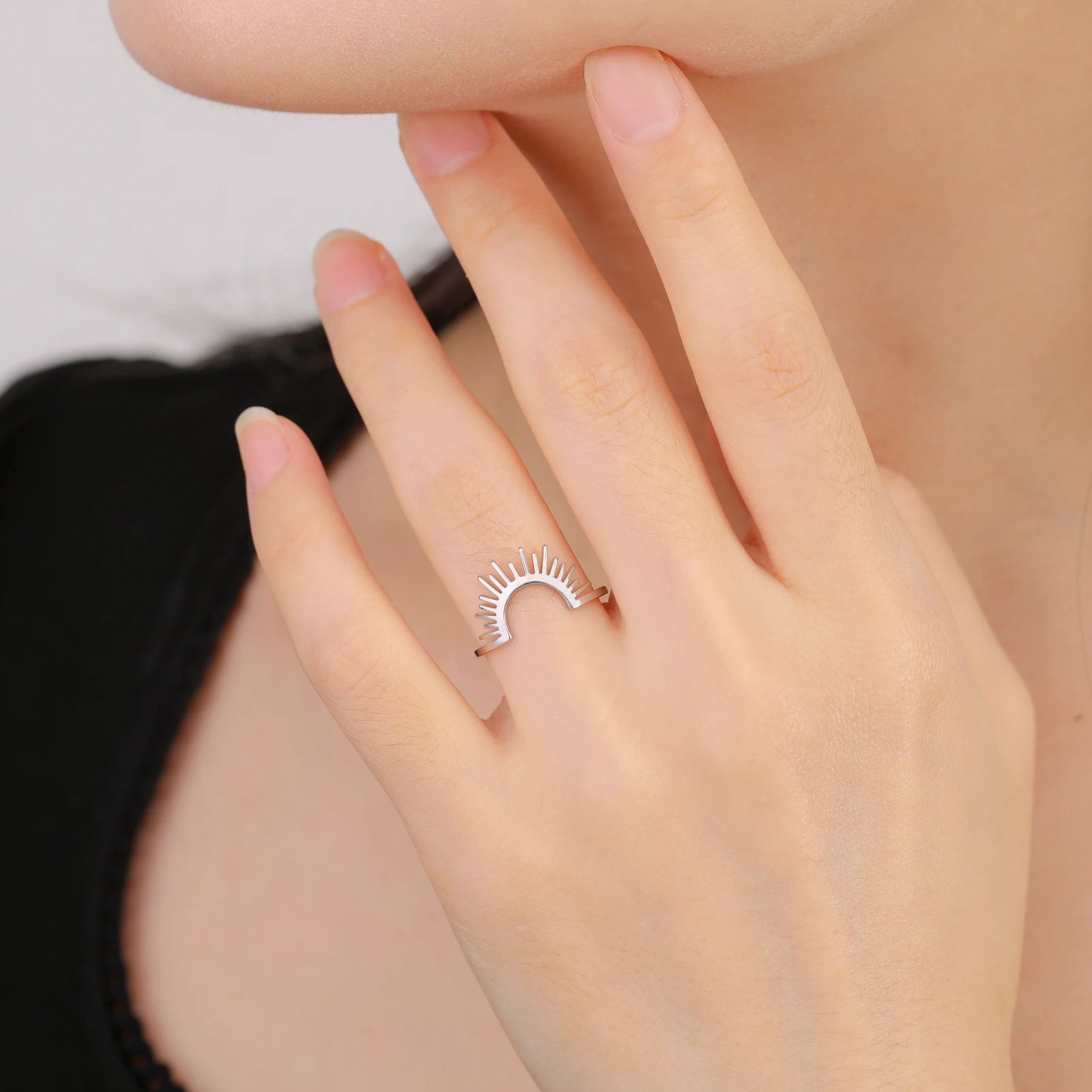 Skyrim Semicircle Sun Ring for Women – Gold Color Stainless Steel Casual Jewelry