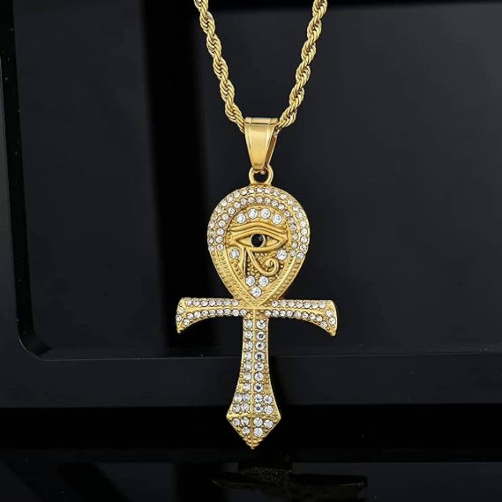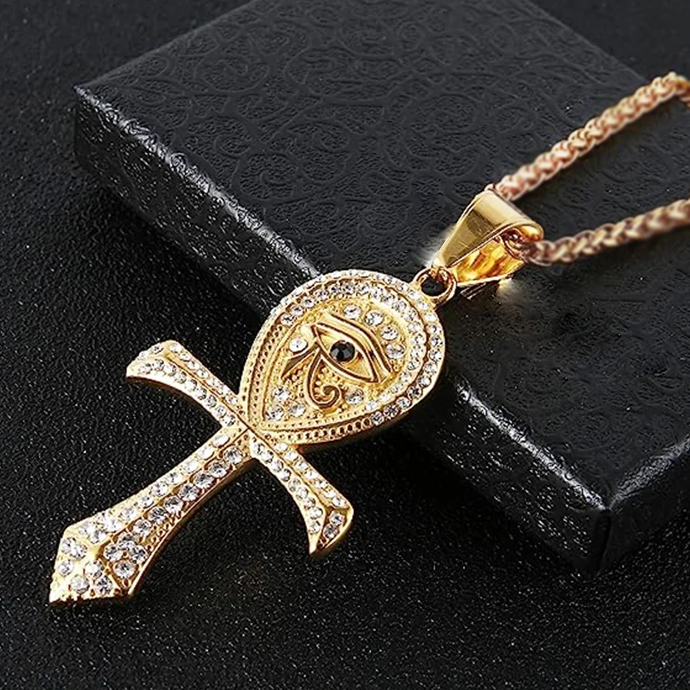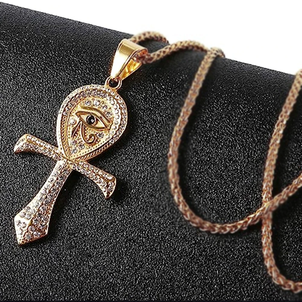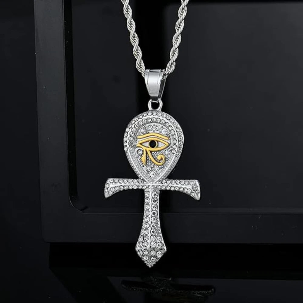 YILUOCD CZ Eye of Horus Pendant Necklace – Ankh Cross Amulet for Men