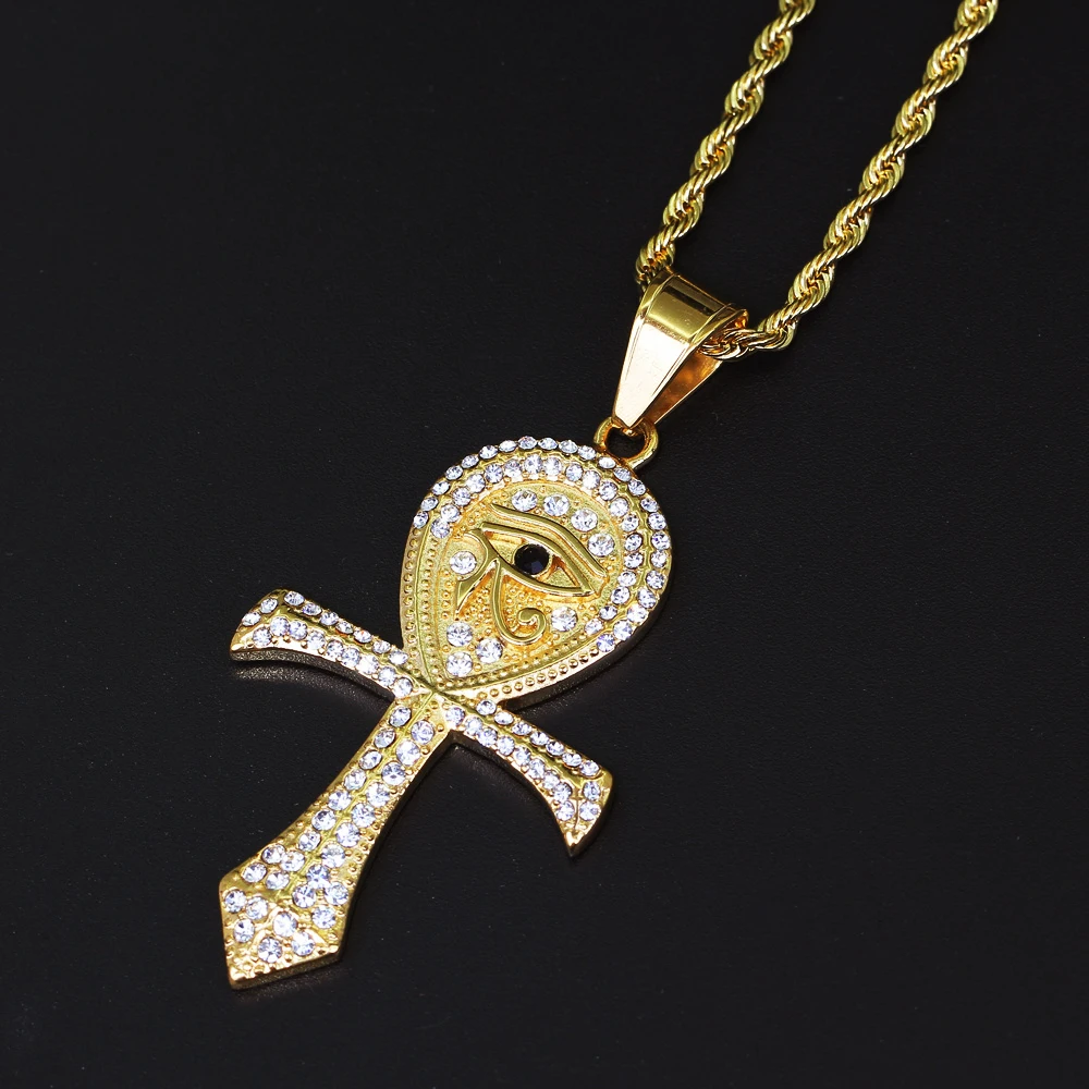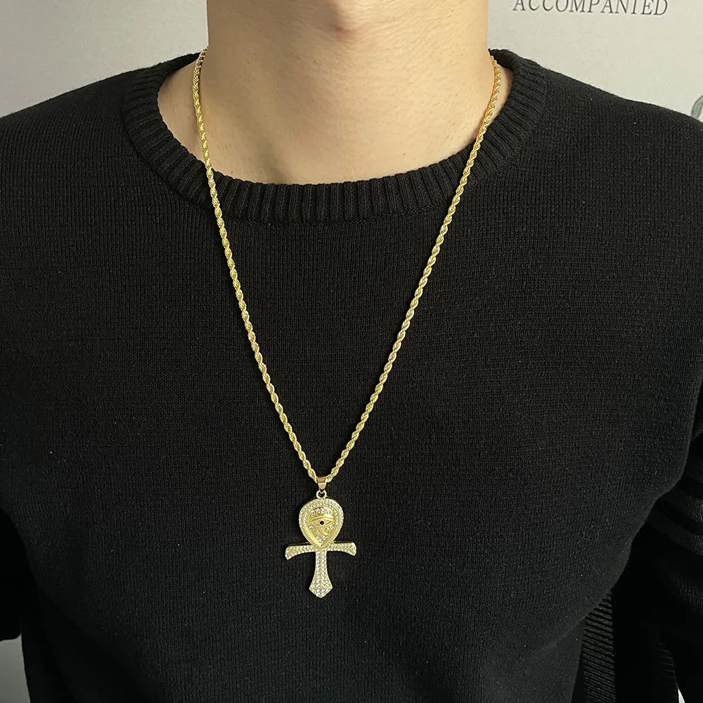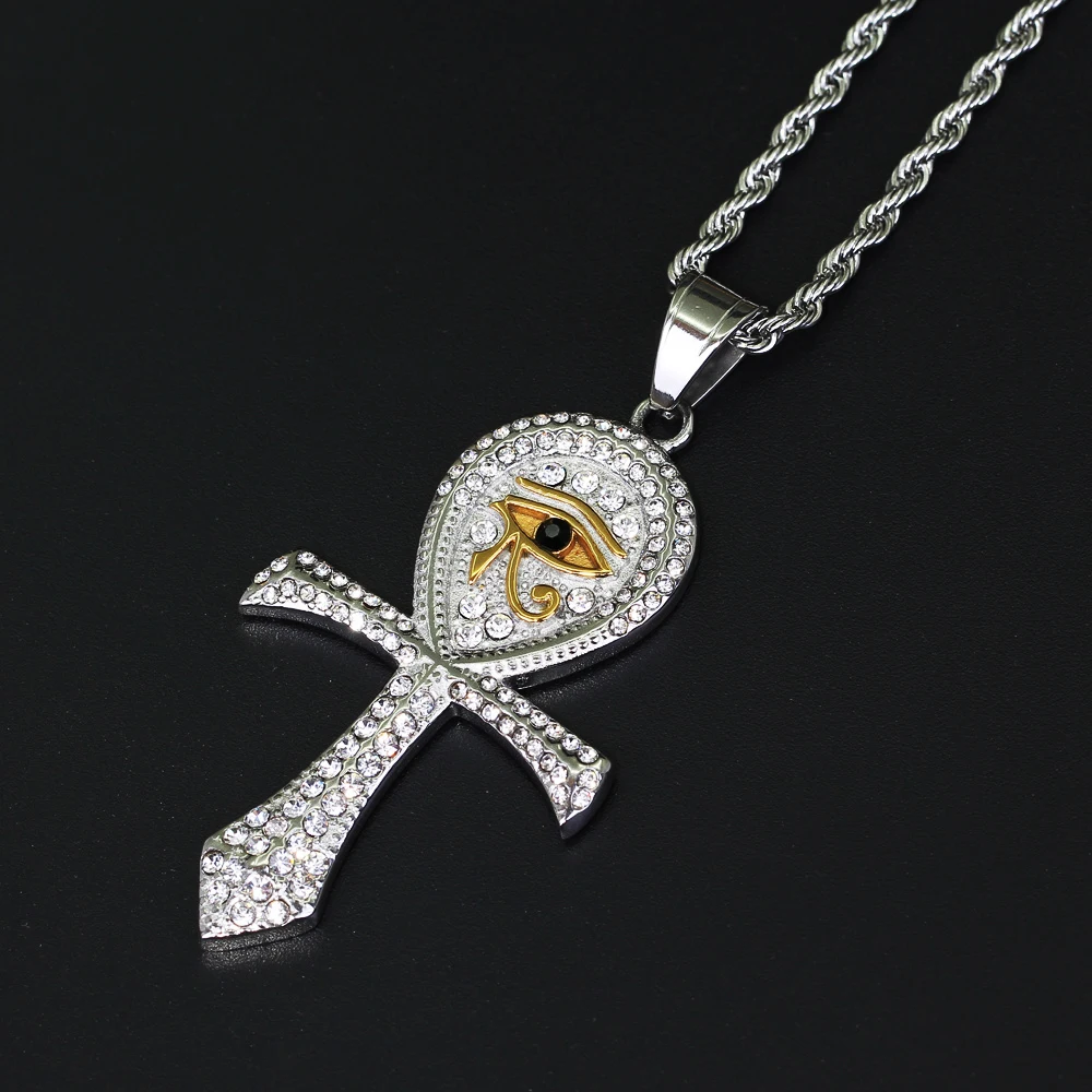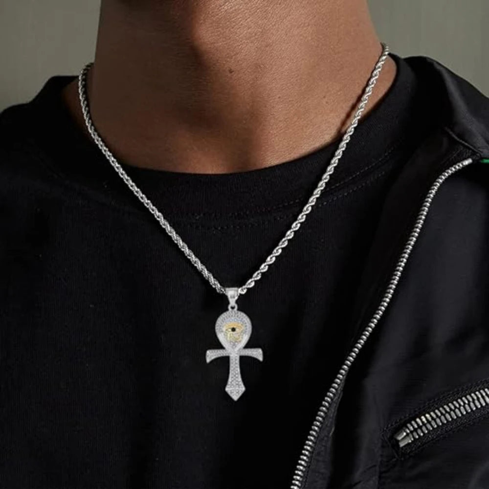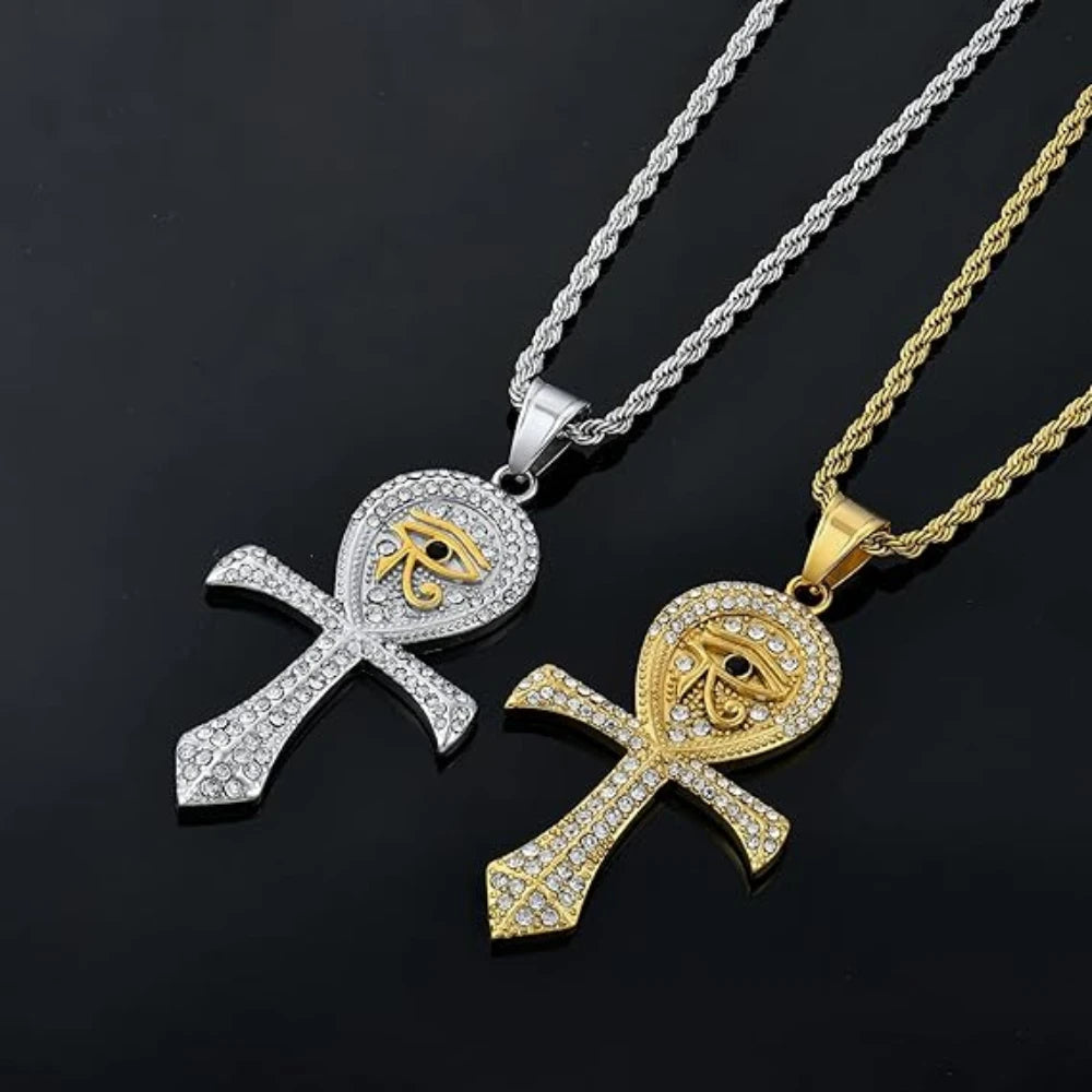 YILUOCD CZ Eye of Horus Pendant Necklace – Ankh Cross Amulet for Men