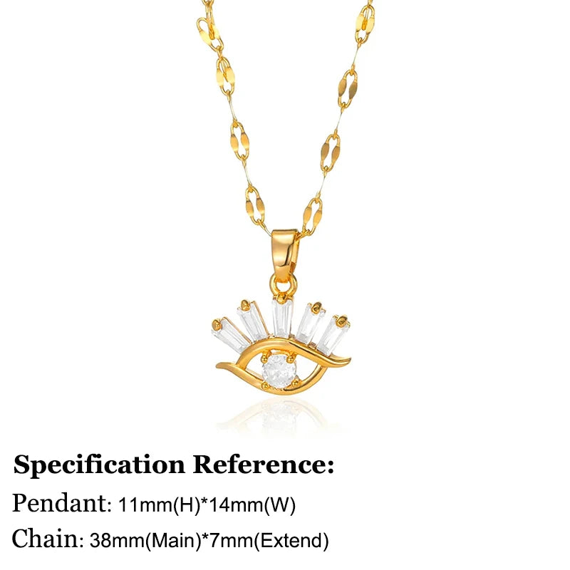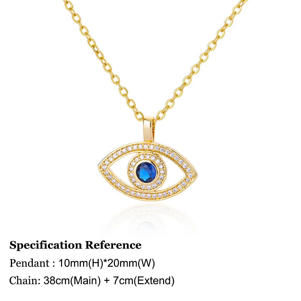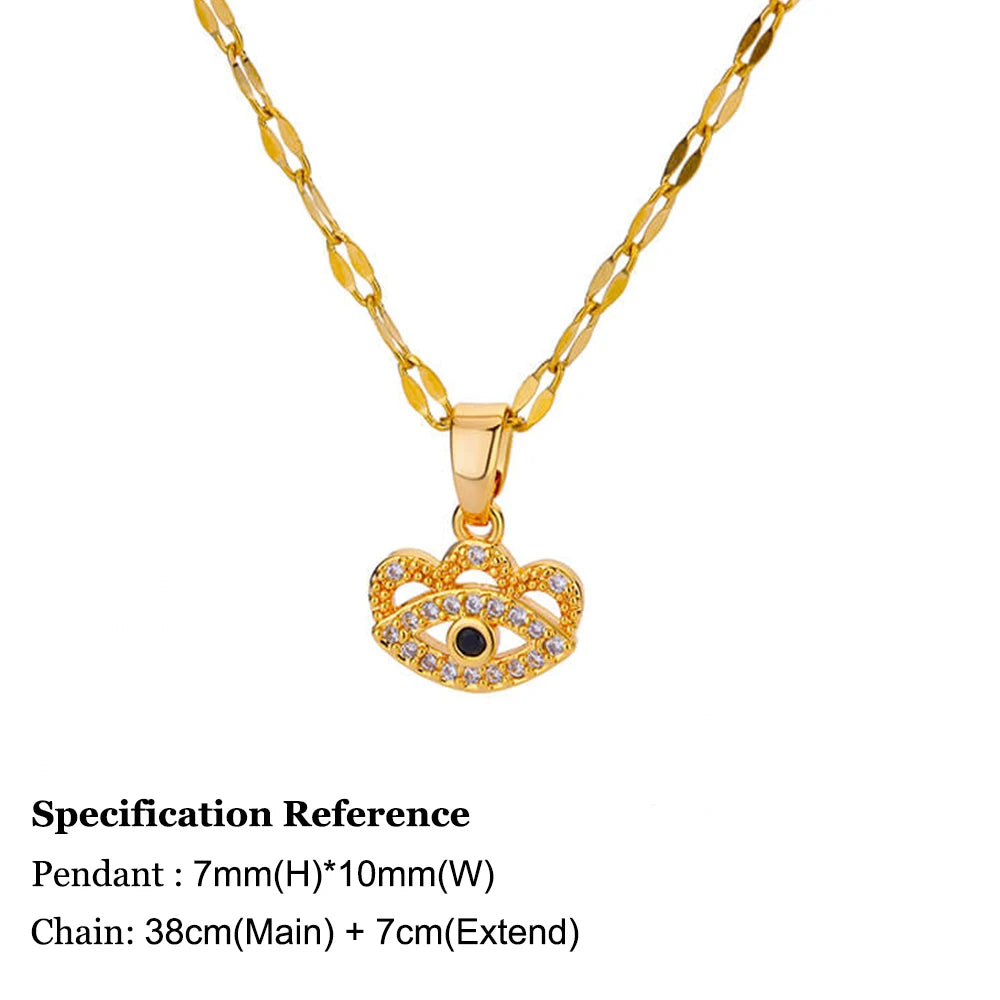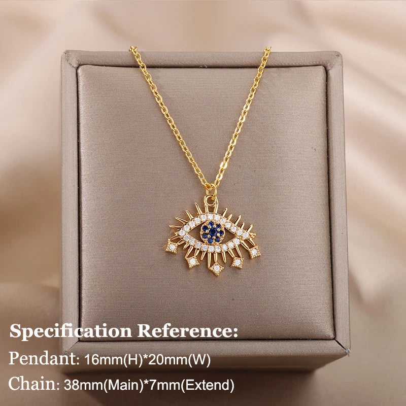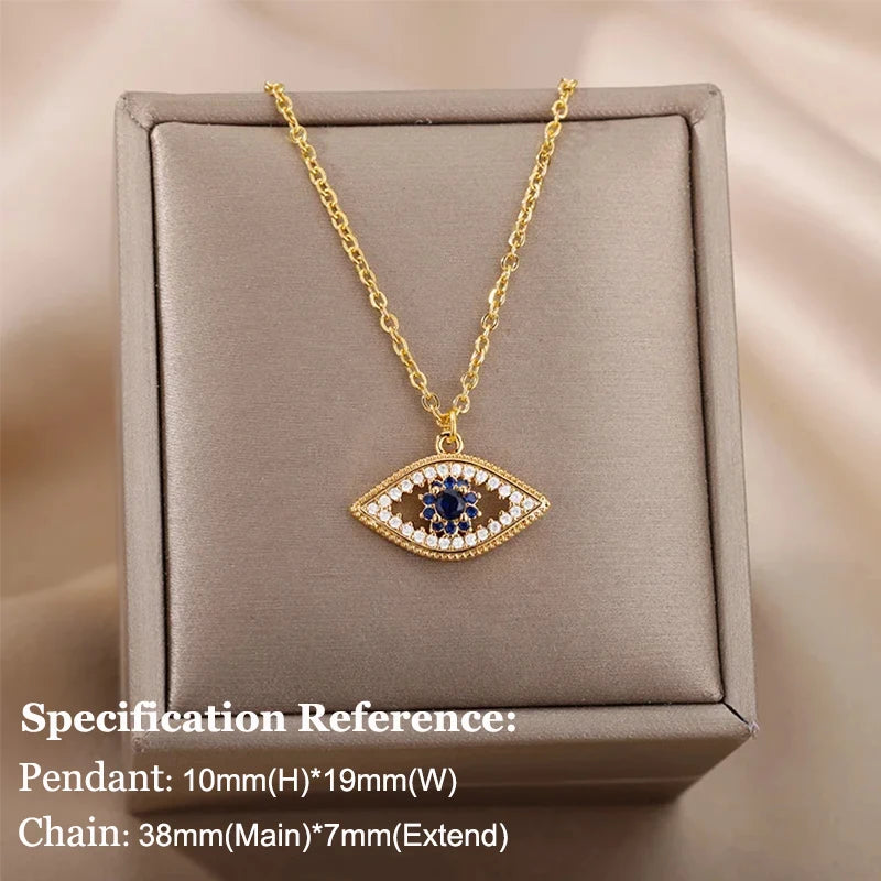 Zircon Blue Evil Eye Necklace – Gold Color Stainless Steel Lucky Pendant for Women