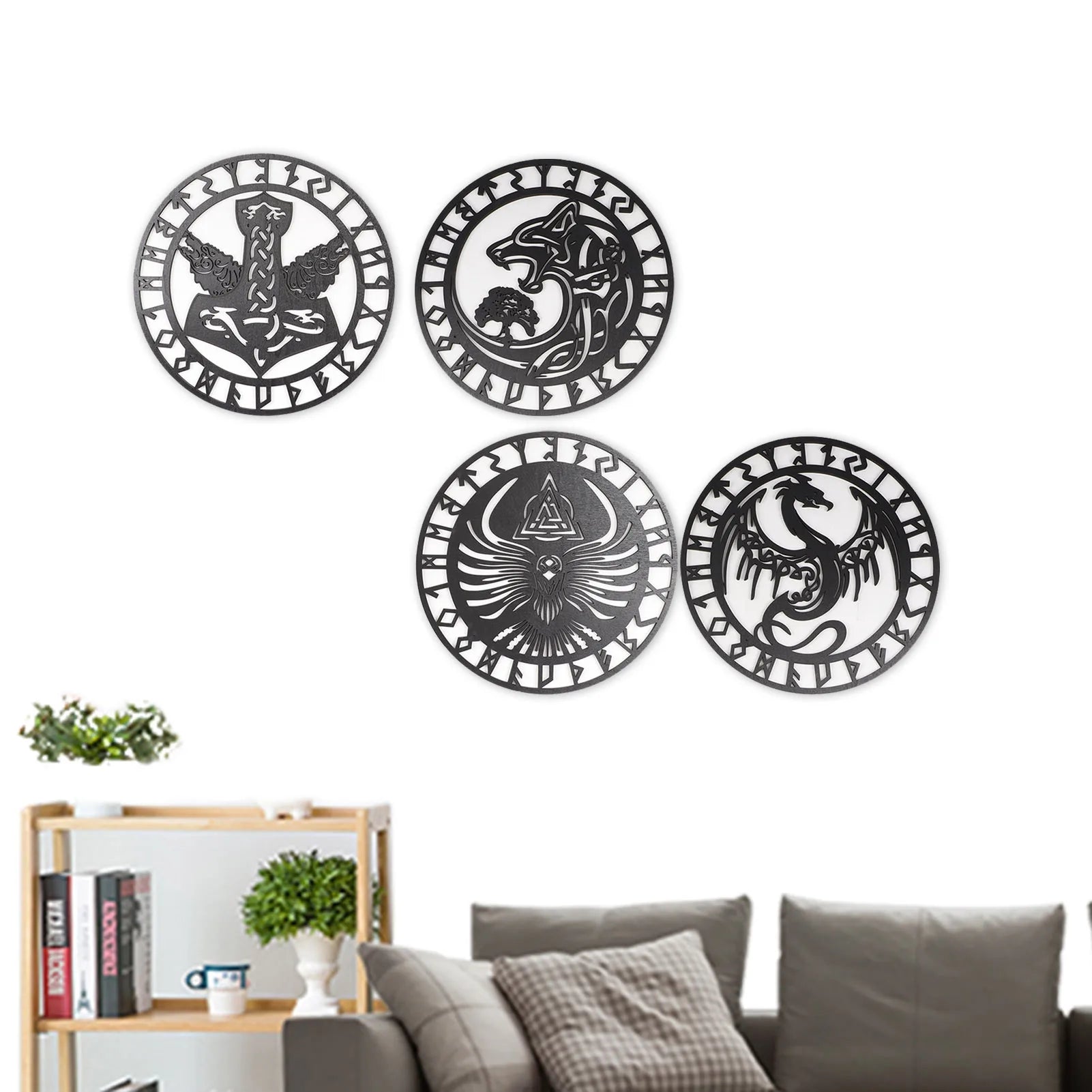4-Piece Viking Wooden Wall Art Set – Nordic Rune Amulet Signs for Home, Office, or Men’s Room Decor