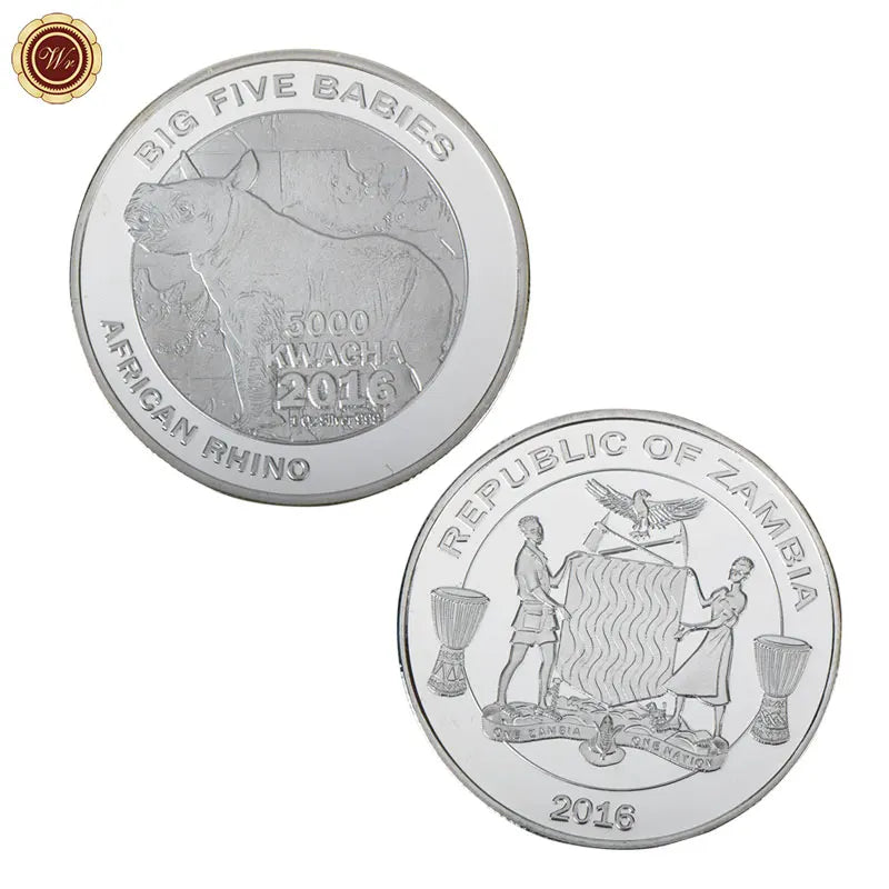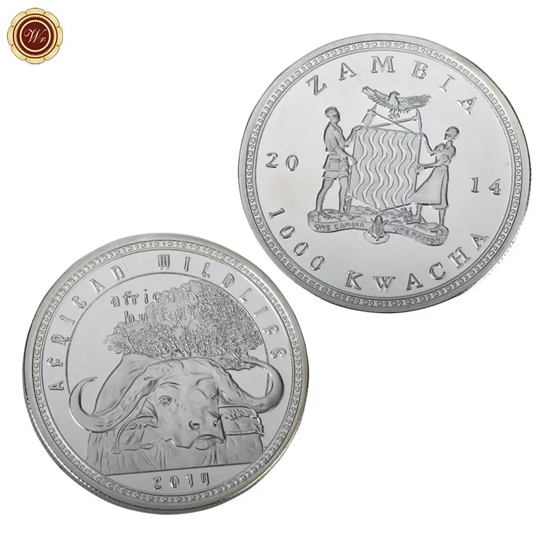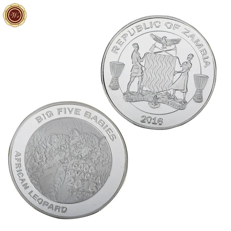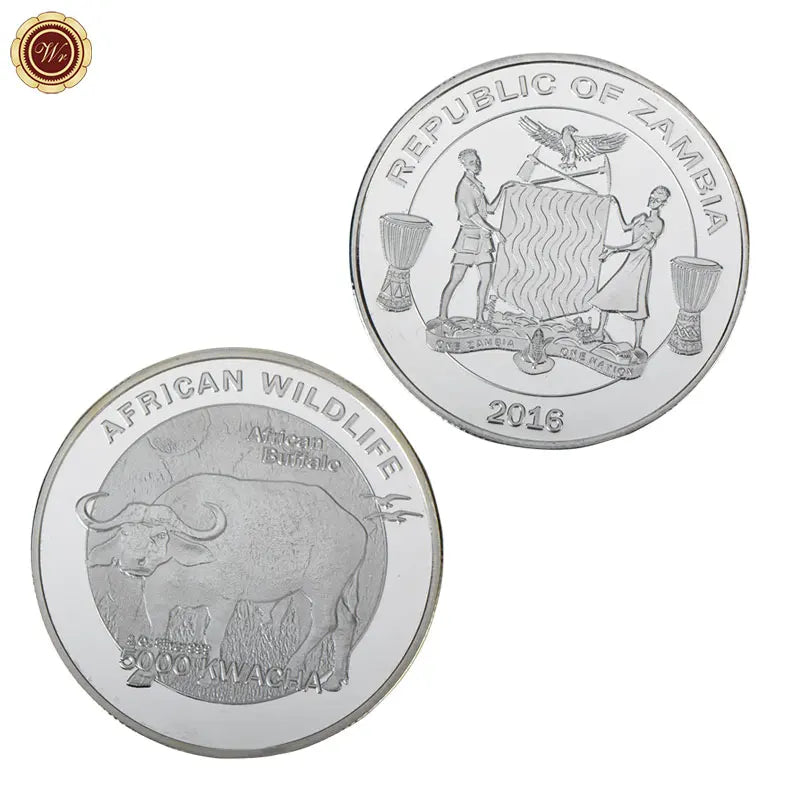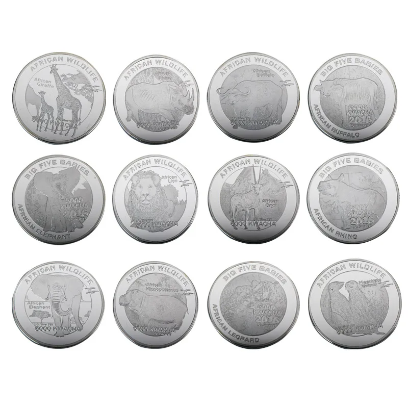 African Wildlife Challenge Coin – Silver Commemorative Zambia Kwacha Souvenir