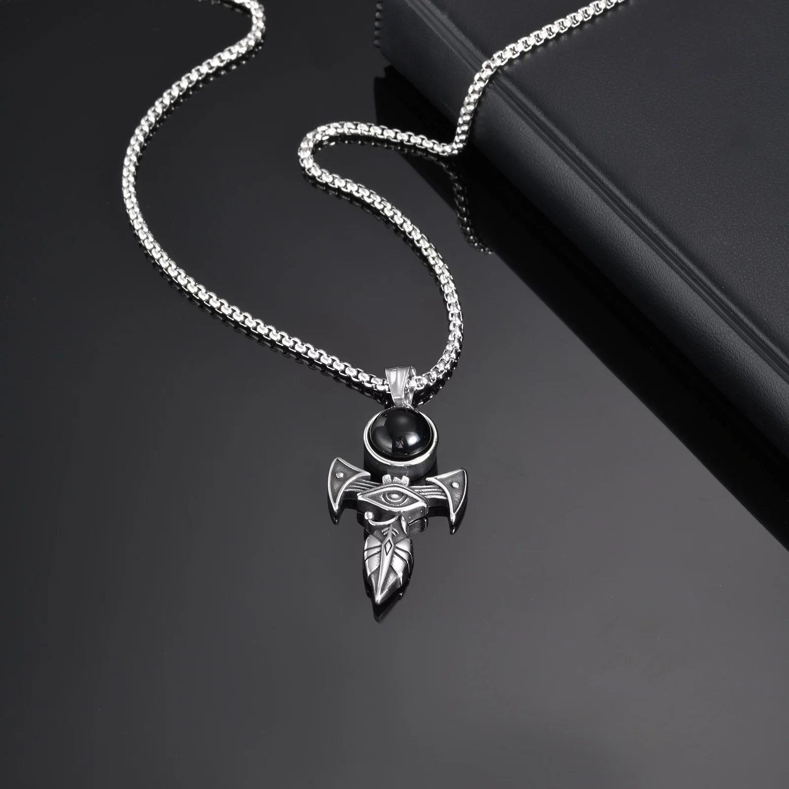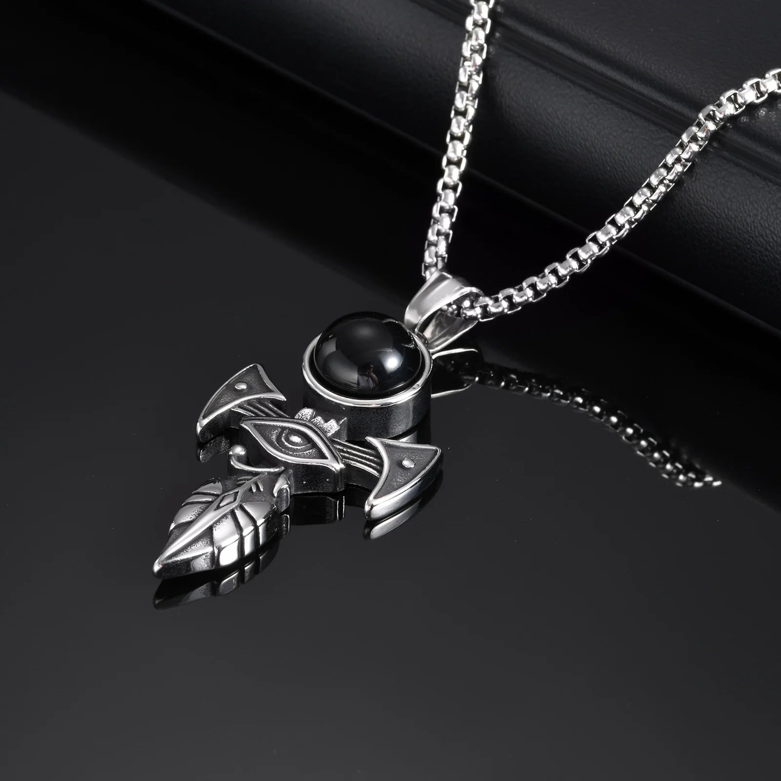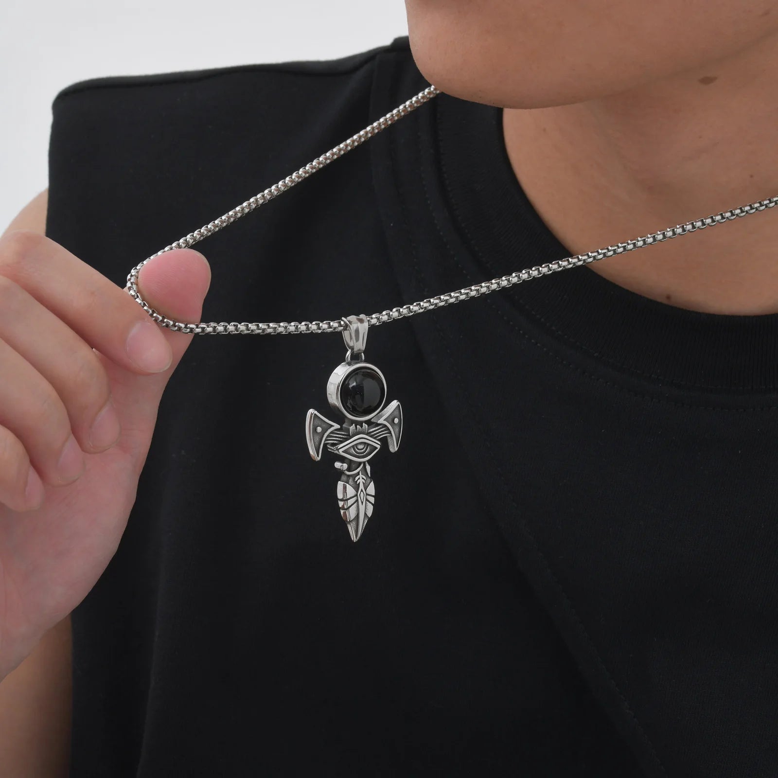 Agate Horus Eye Necklace for Men – Black Onyx Cross Pendant Rock Punk Vintage Jewelry