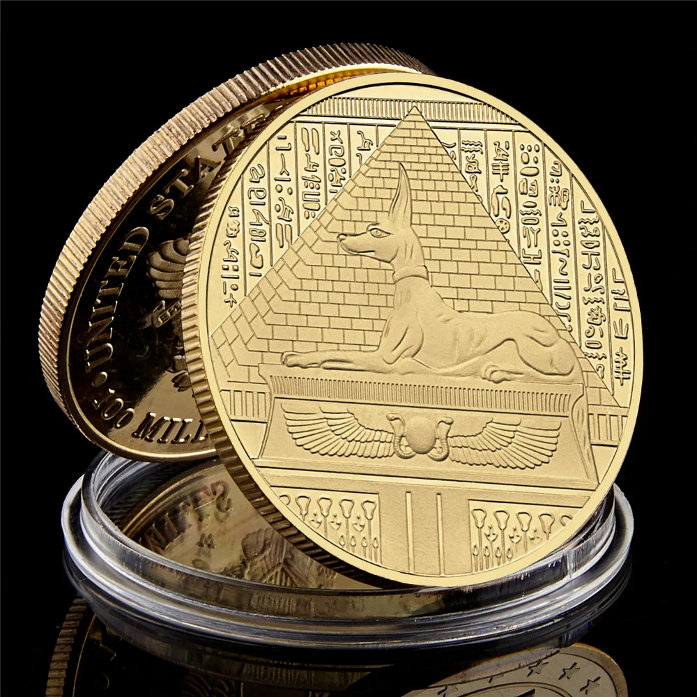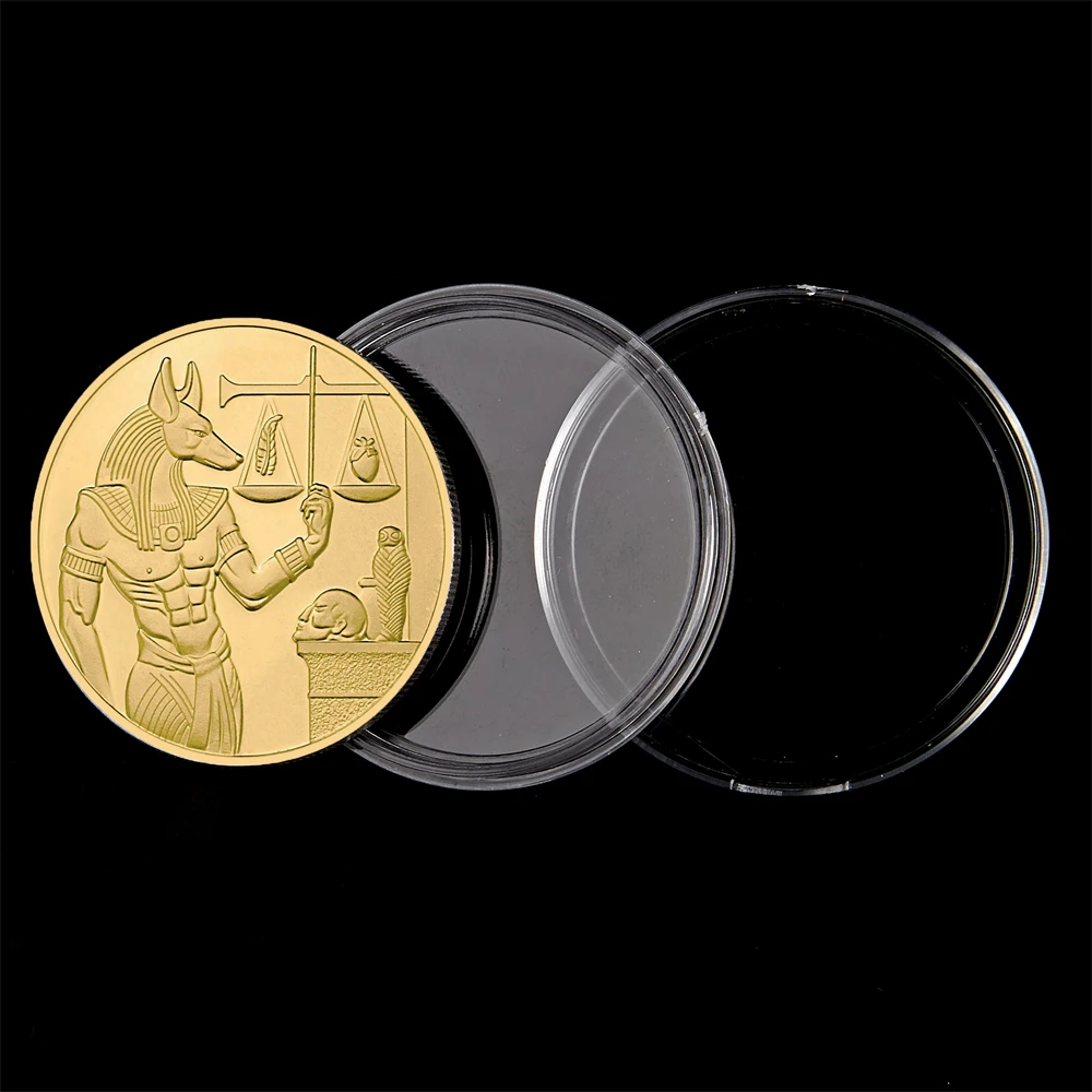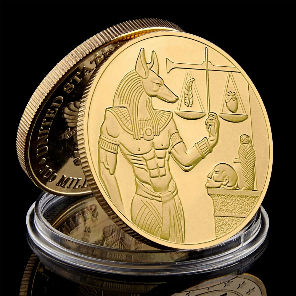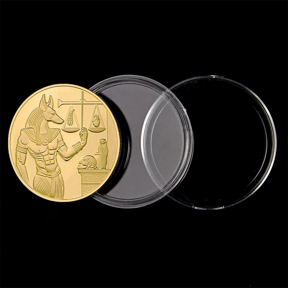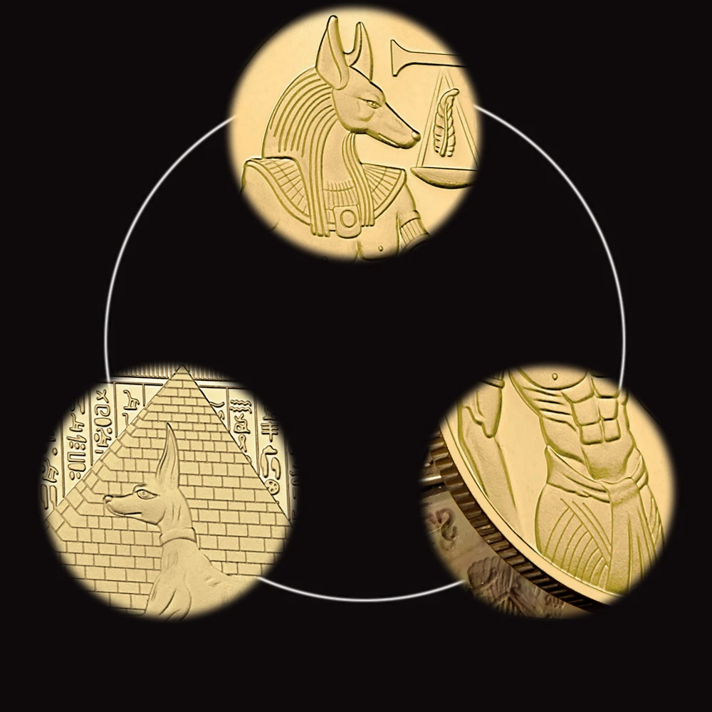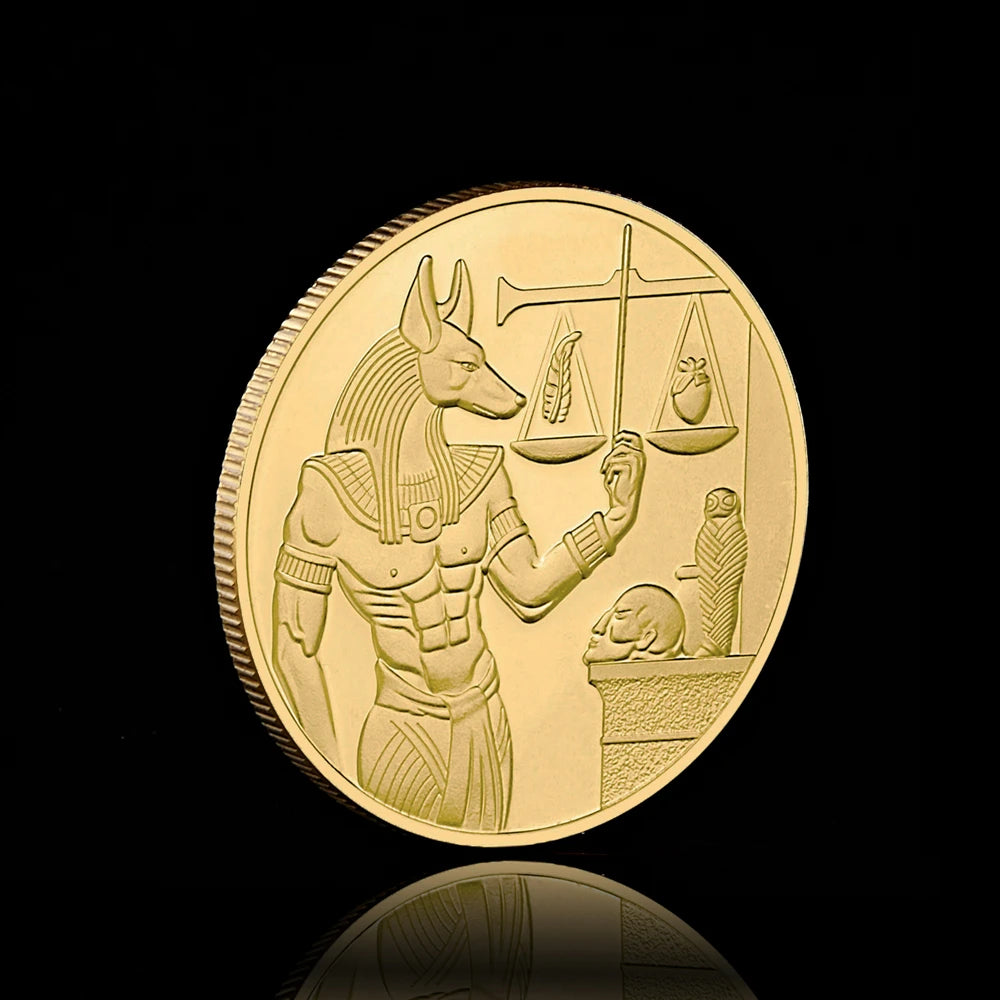 Ancient Egypt Anubis God of Death Commemorative Coin – Gold/Silver Plated with Pyramid Dieb Pattern