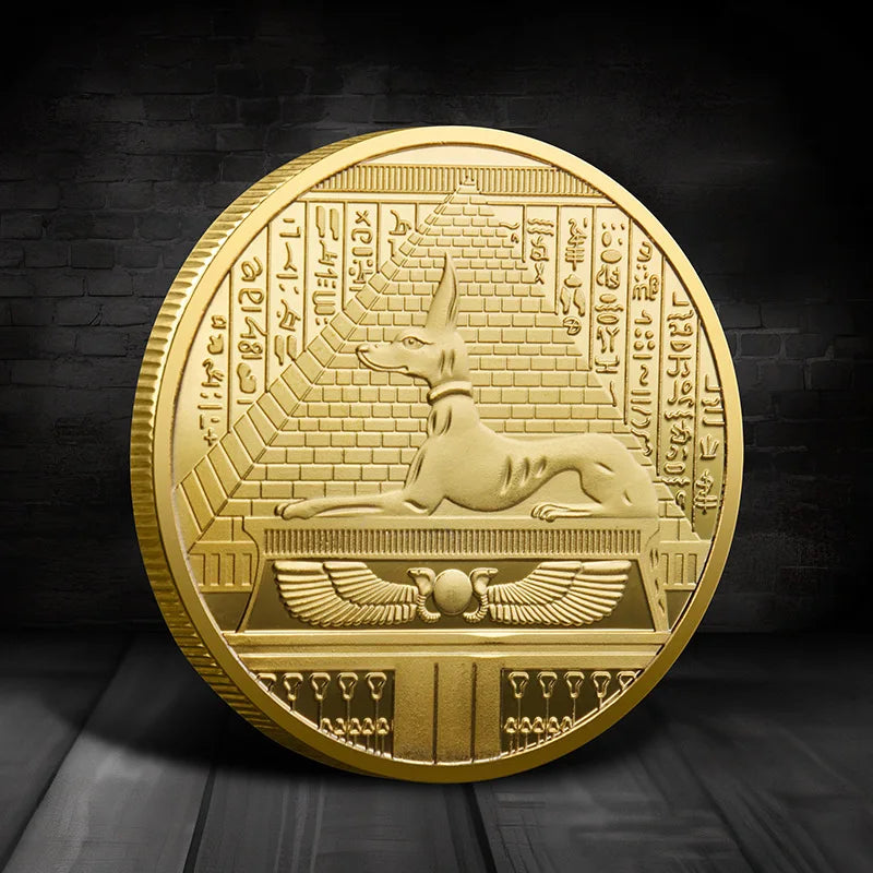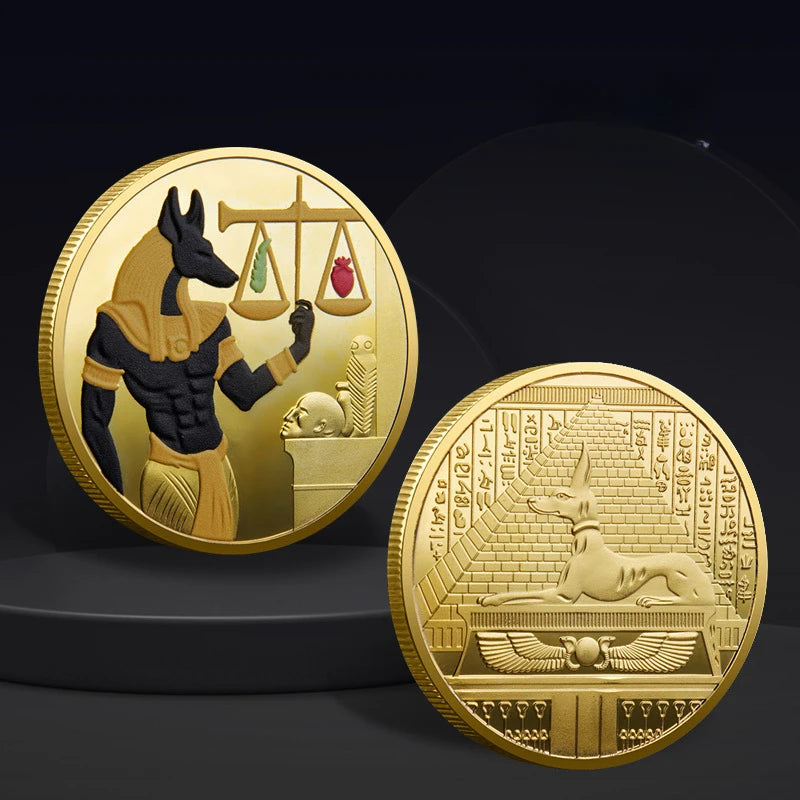 Ancient Egyptian Pharaoh Gold-Plated Souvenir Coin – Anubis & Libra Collectible Medallion