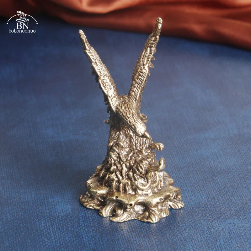 Add majestic elegance to your space with this solid copper and bronze flying eagle statue. Weighing 94 grams, this brass miniature figurine is perfect as a desktop ornament, tea pet, or collector’s piece.