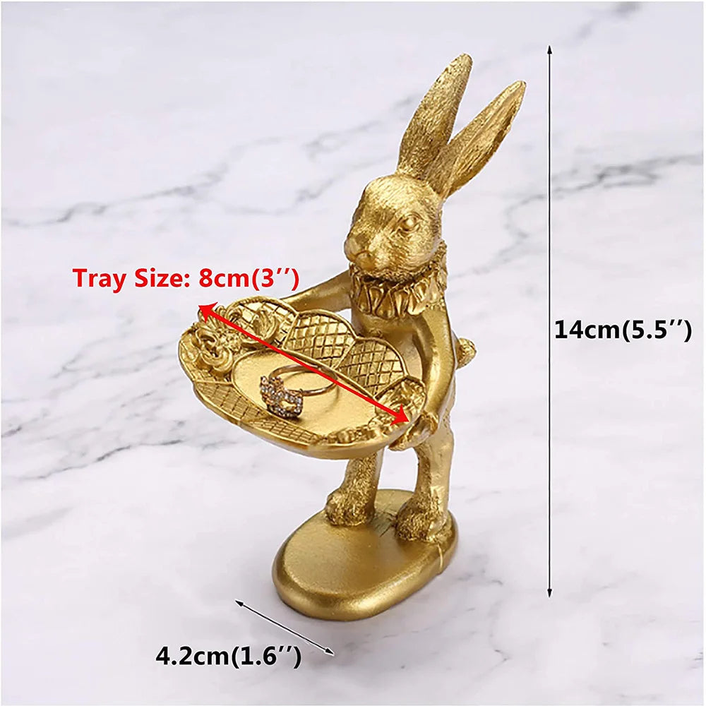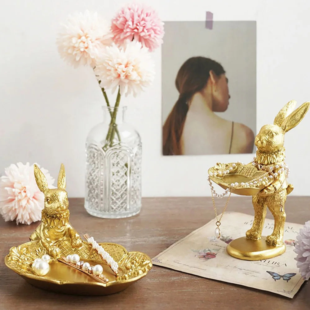 Cute Golden Bunny Figurine – Jewelry Ring Tray & Decorative Easter Rabbit Statue