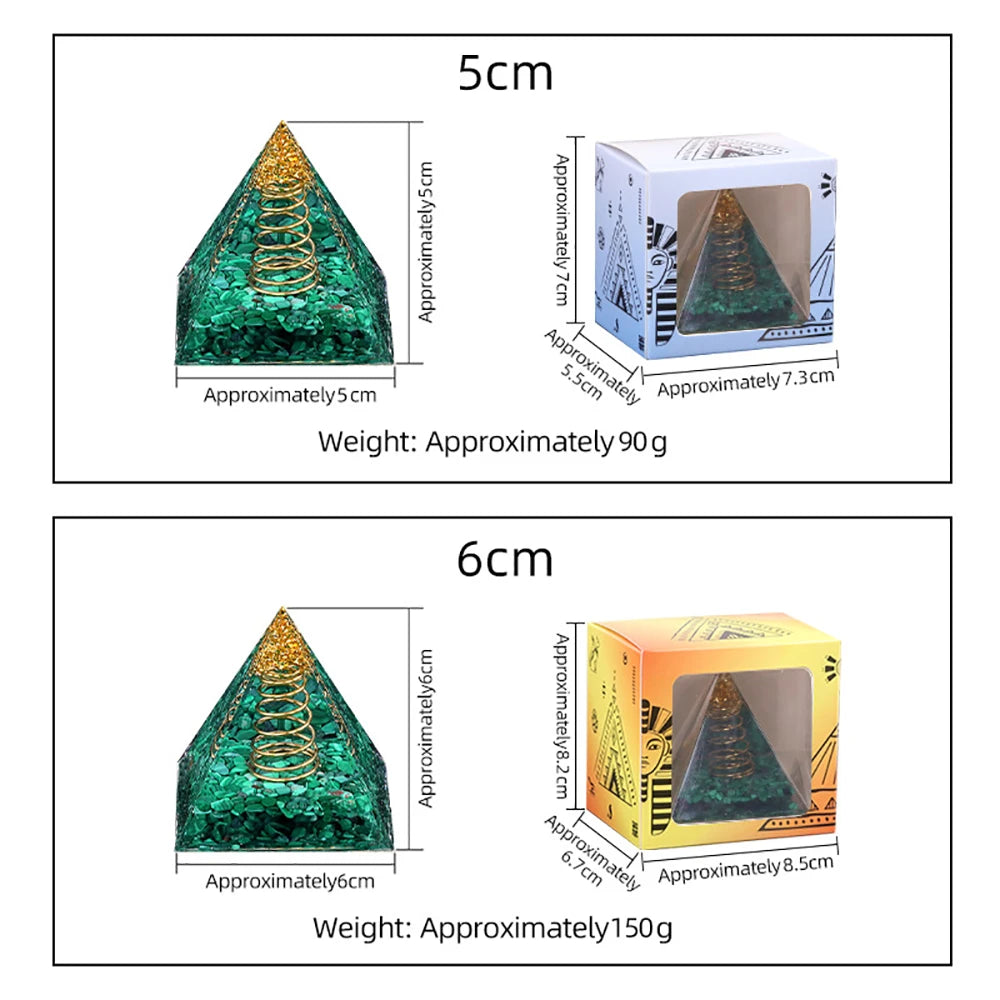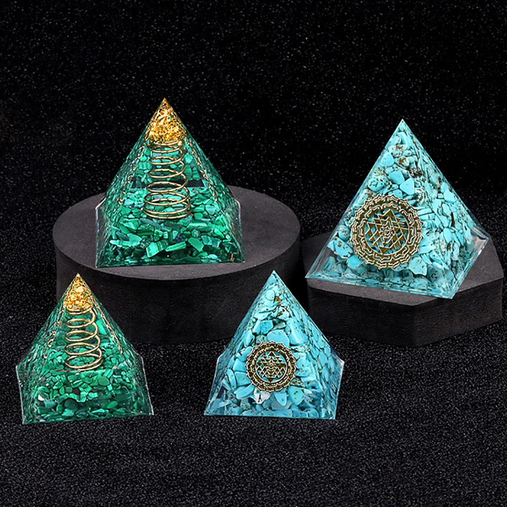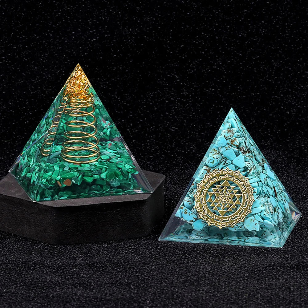 Handmade Natural Malachite & Blue Turquoise Orgone Pyramid – Healing Crystal Resin Ornament with Gift Box