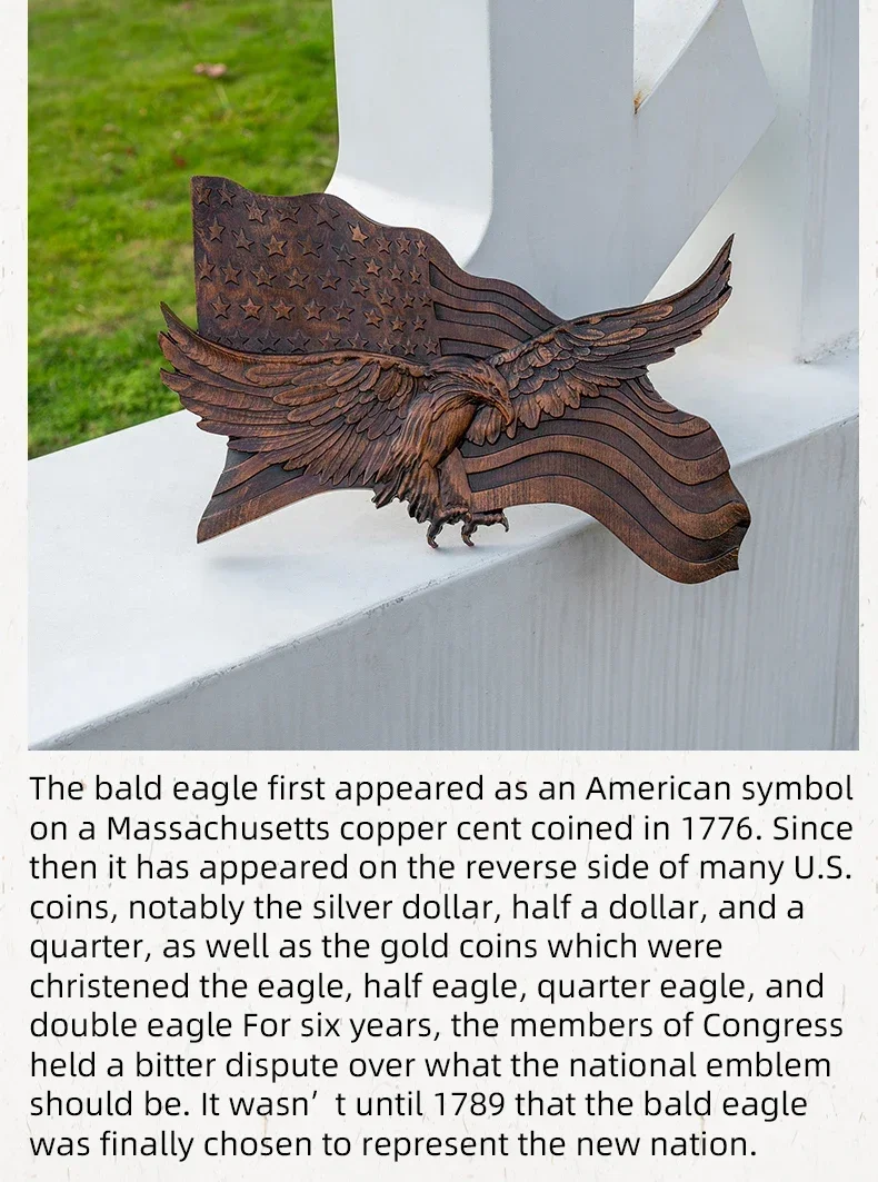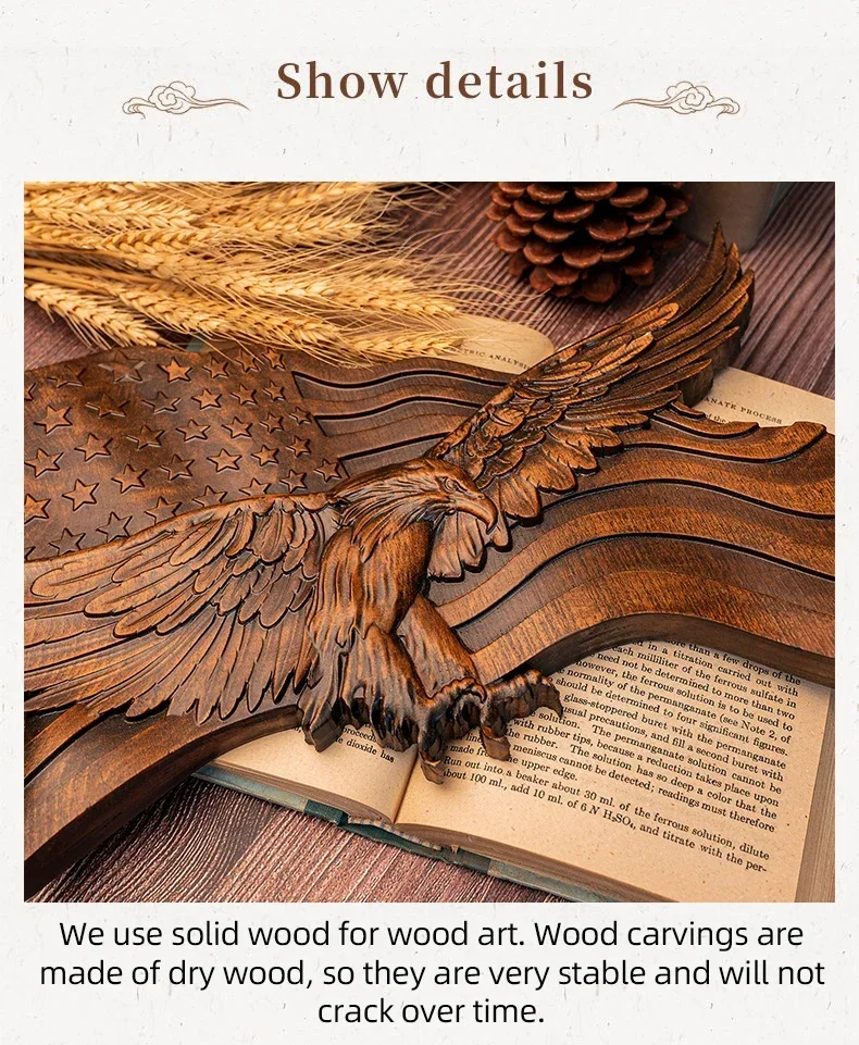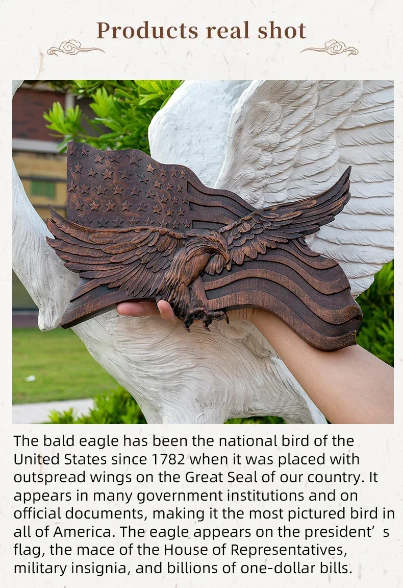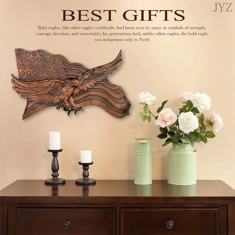 Celebrate freedom and strength — add this American flag with eagle wooden carving to your decor today!