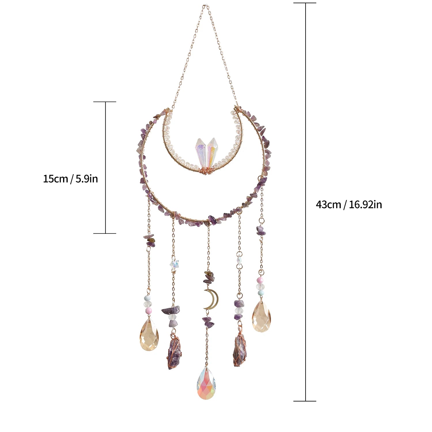 Natural Agate Dream Catcher Wall Hanging – Moon, Star & Sun Crystal Stone Decor for Garden & Bedroom