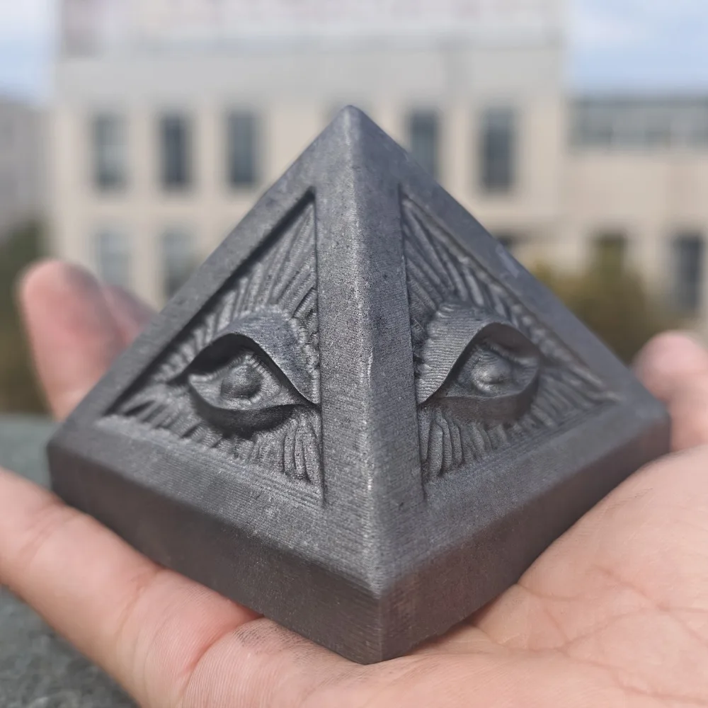 Natural Shungite Pyramid Carving – Crystal Craft for Protection & Wisdom Home Decor