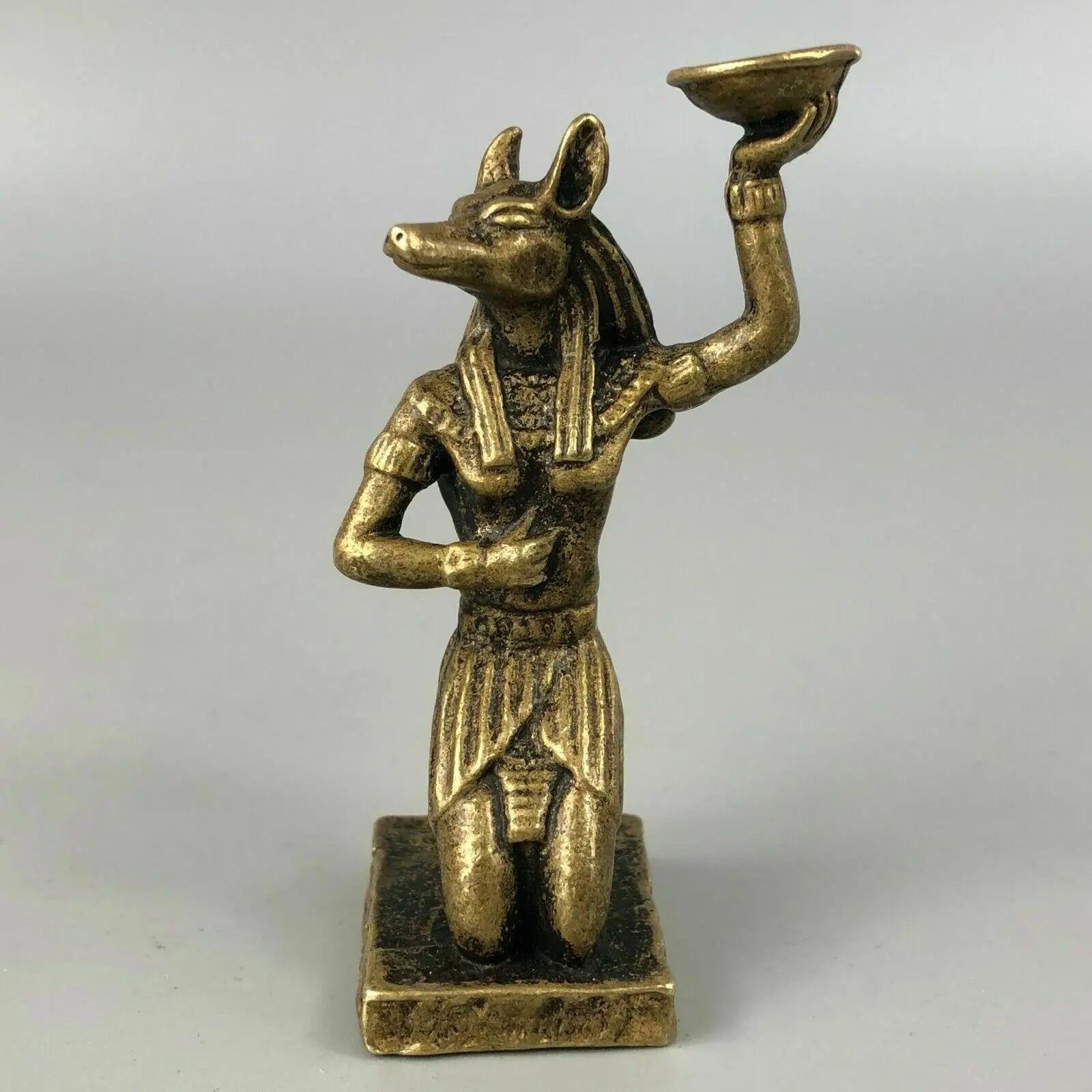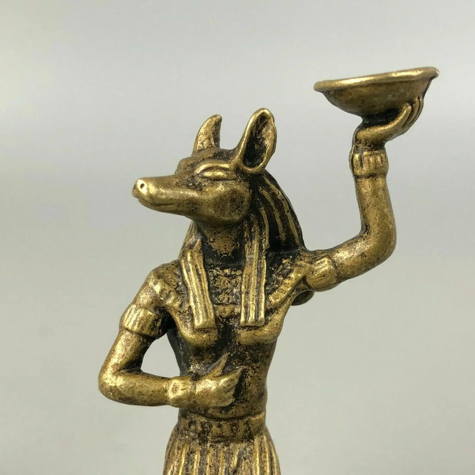 Discover a unique fusion of cultures with this rare collectible Chinese antique brass statue, depicting the Egyptian god Anubis with a distinctive wolf-like head. Expertly handcrafted, this piece blends ancient mythology with traditional Chinese artistry.