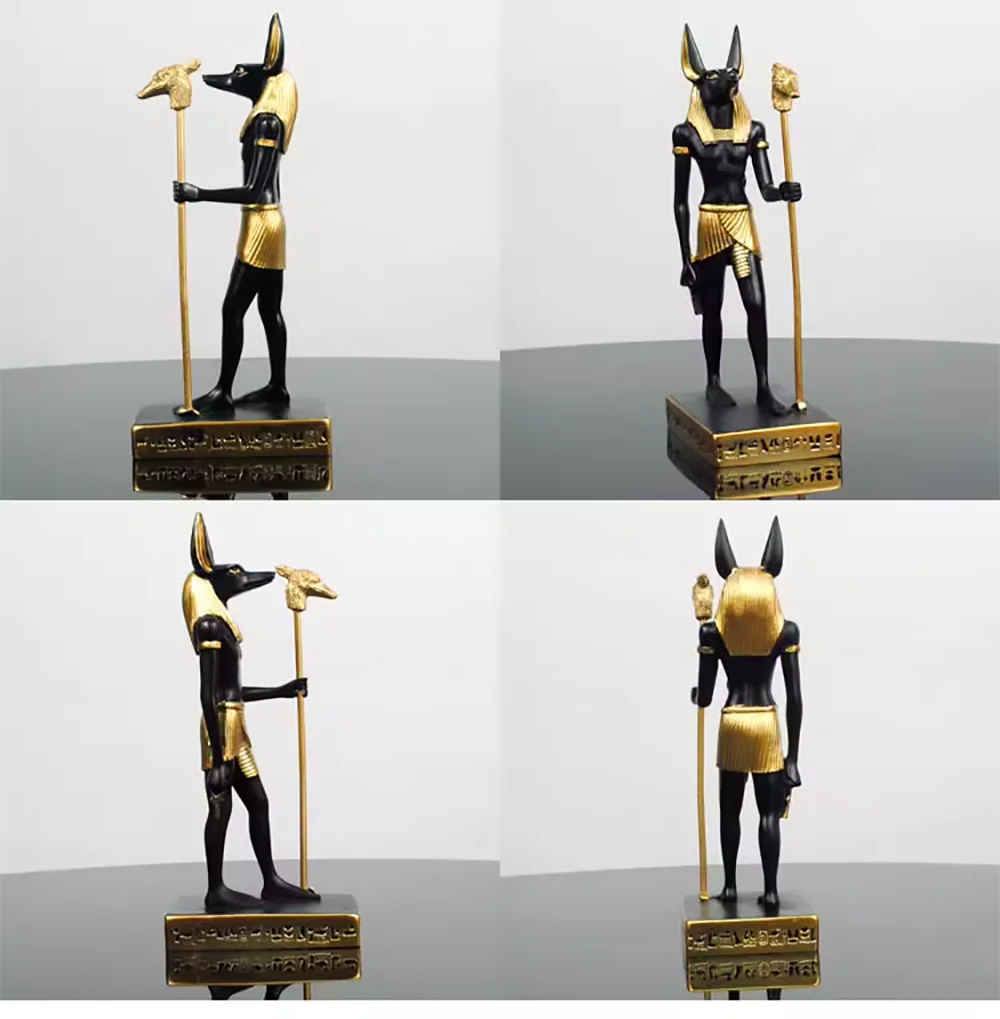 Own a unique piece of cultural fusion with this rare collectible brass statue featuring the Egyptian god Anubis with a wolf-like head, crafted in traditional Chinese handwork style. A striking artifact for serious collectors and mythology enthusiasts.