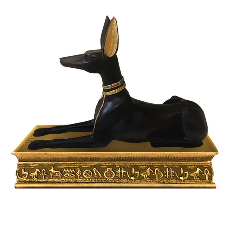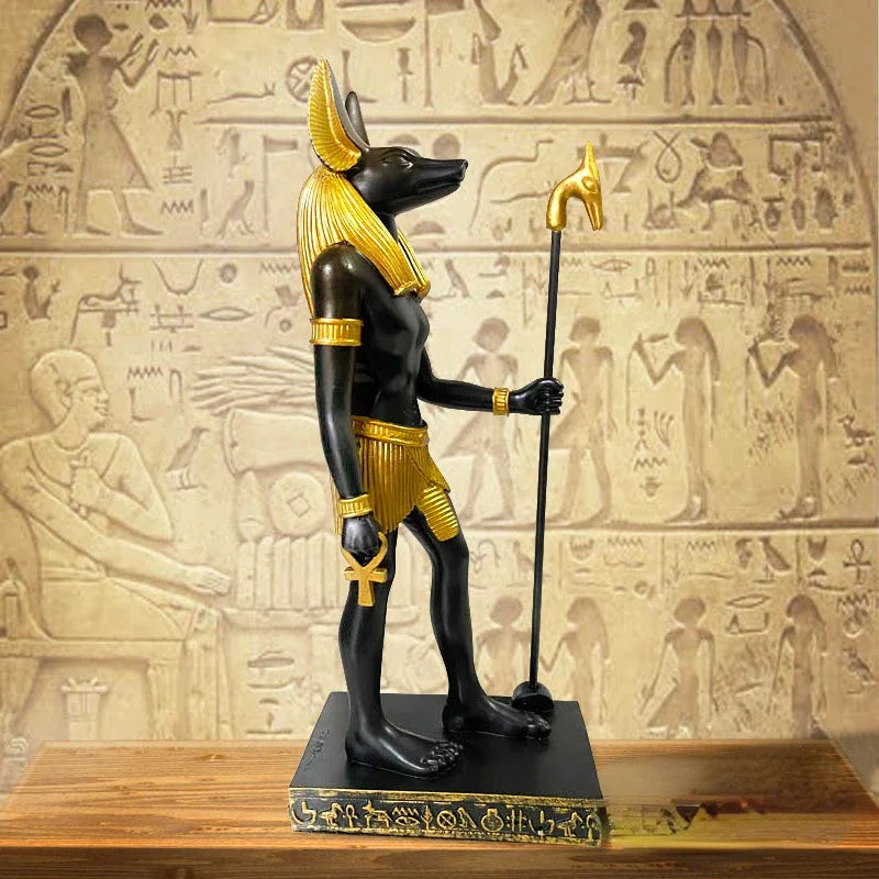 • Detailed sculpture combining Anubis and Horus motifs from Egyptian mythology