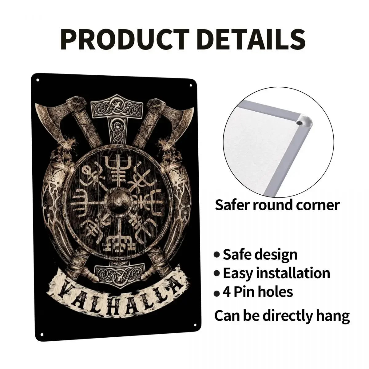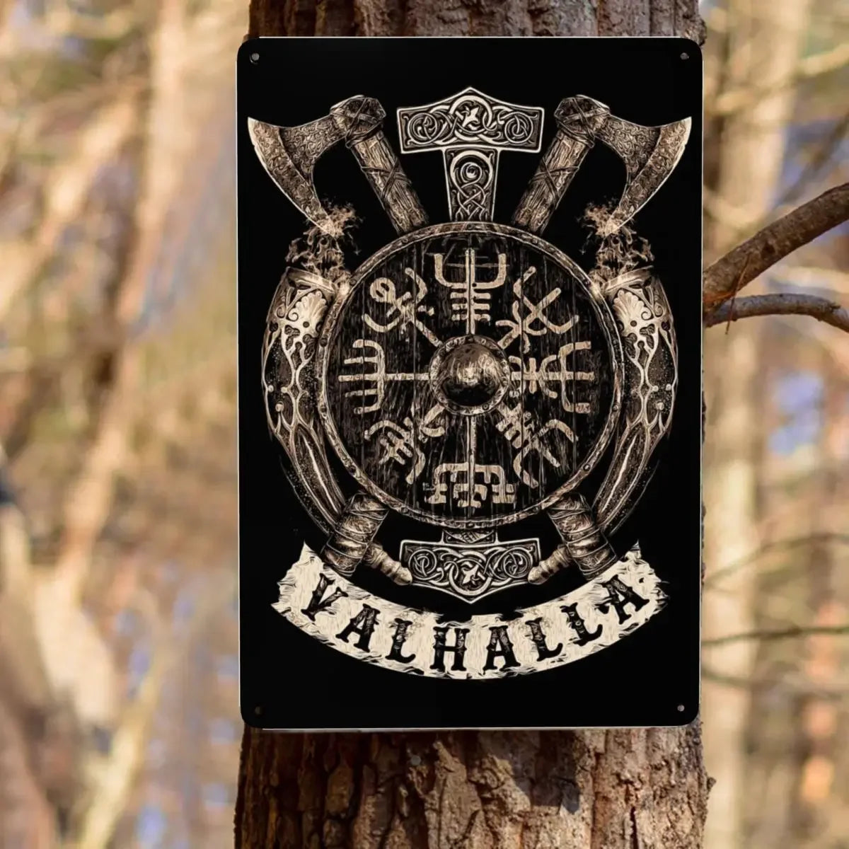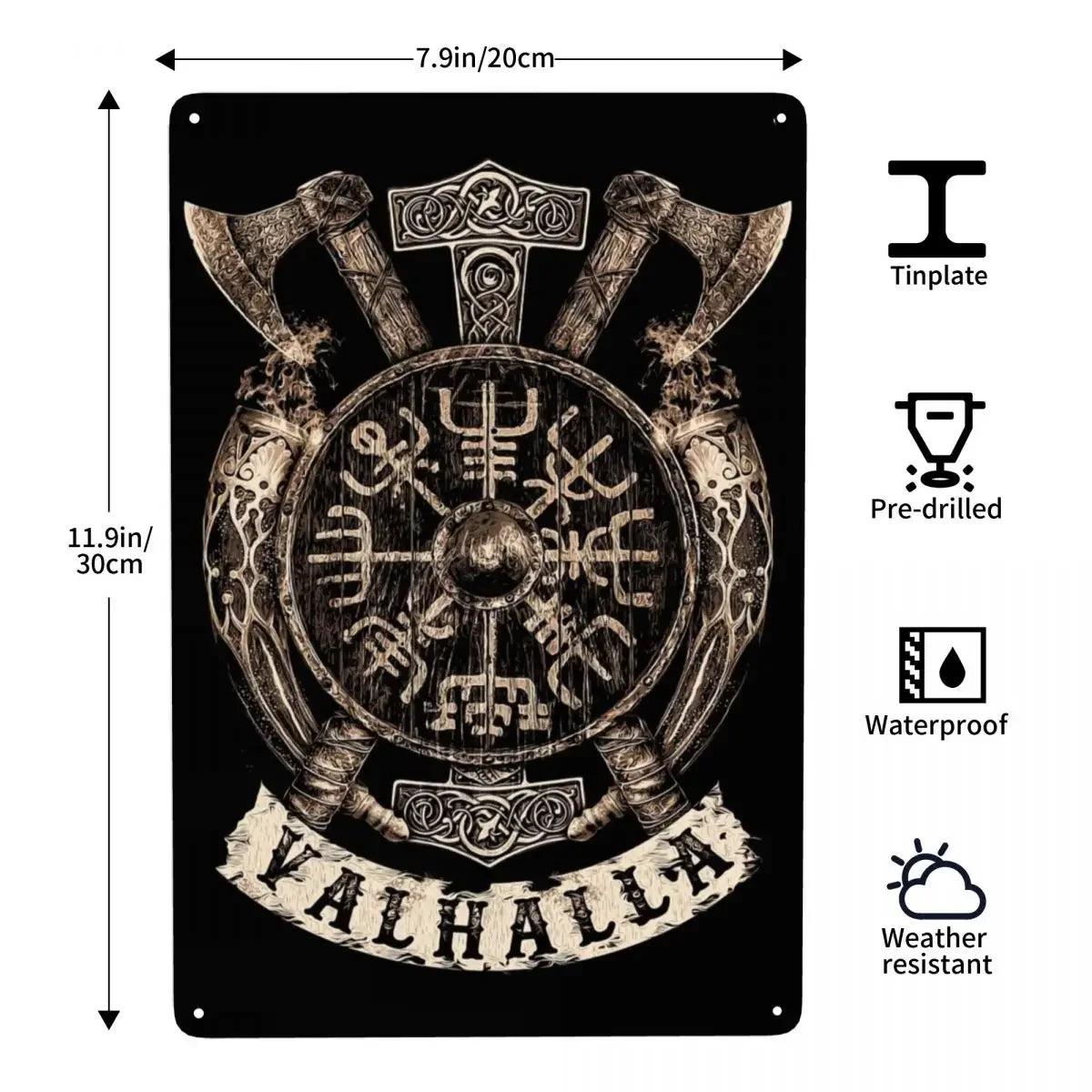 Add a bold Nordic touch to your space with this retro Viking Vegvisir shield metal sign. Perfect for personalizing your cafe, man cave, bar, or game room with authentic Viking symbolism and vintage style.