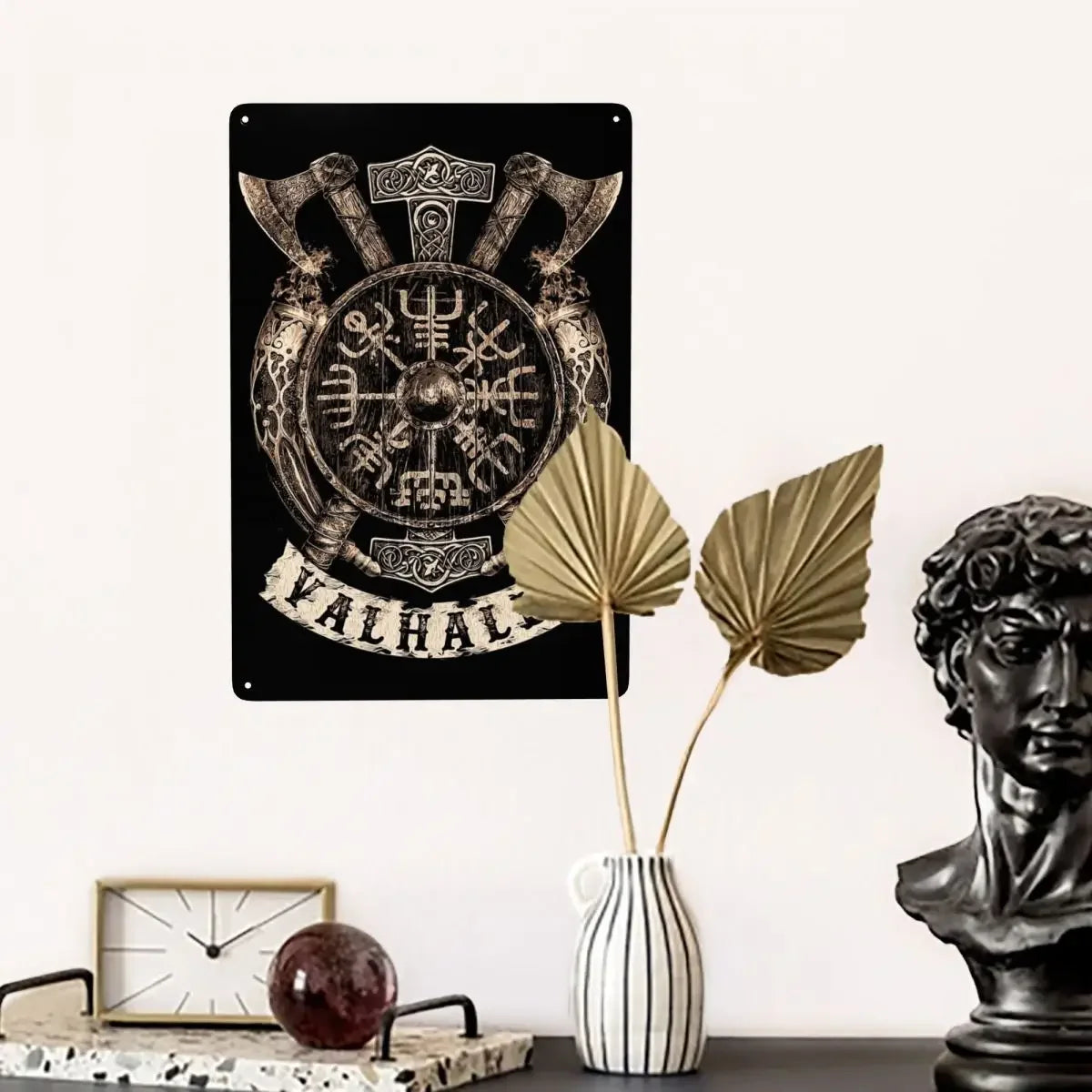 Retro Viking Vegvisir Shield Metal Sign – Personalized Tin Plaque for Cafe, Man Cave & Bar Decor