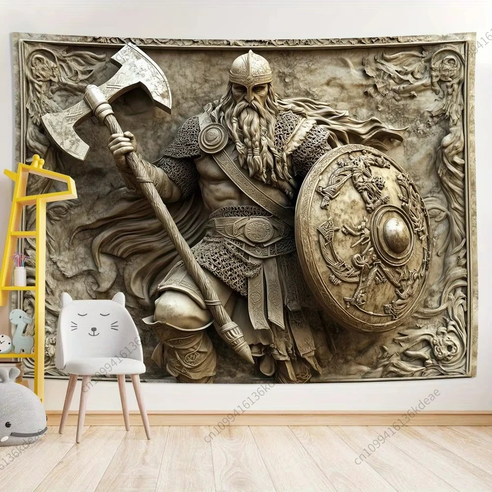 Elevate your space with this unique Viking Warrior tapestry featuring a striking 3D embossed design inspired by Norse mythology. Perfect for adding bold aesthetic vibes to parties, bedrooms, or living rooms.