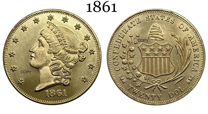 United States 1861 Confederate States of America Double Eagle 20 Dollars Brass Gold Coin Replica