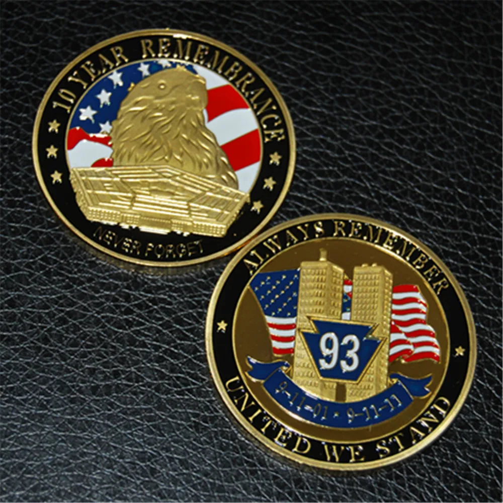 Front side features the Twin Towers, American flag, and inscriptions such as "Never Forget" or "United We Stand"