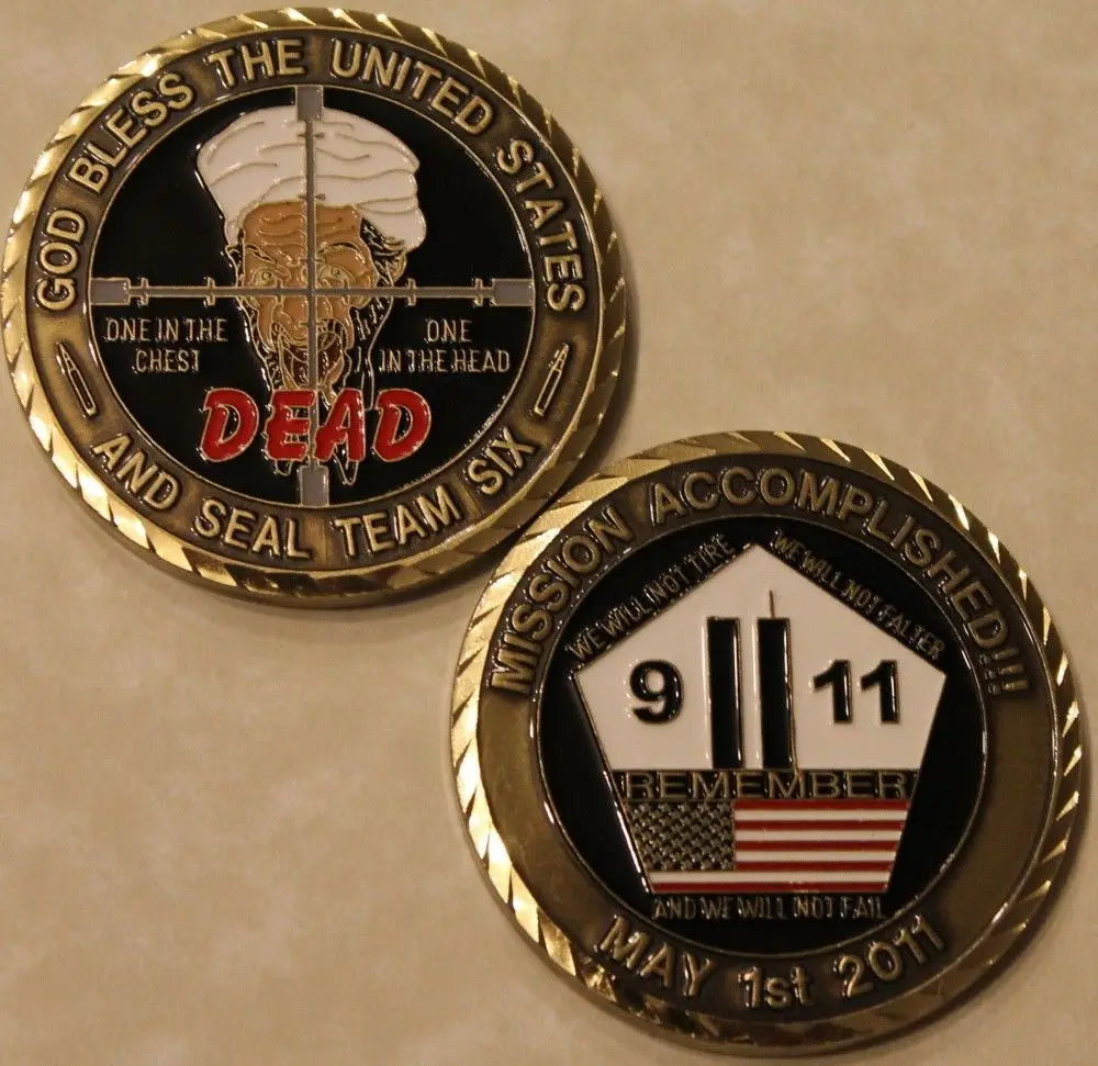 Reverse side often displays military insignia, bald eagle, or date "9.11.01"