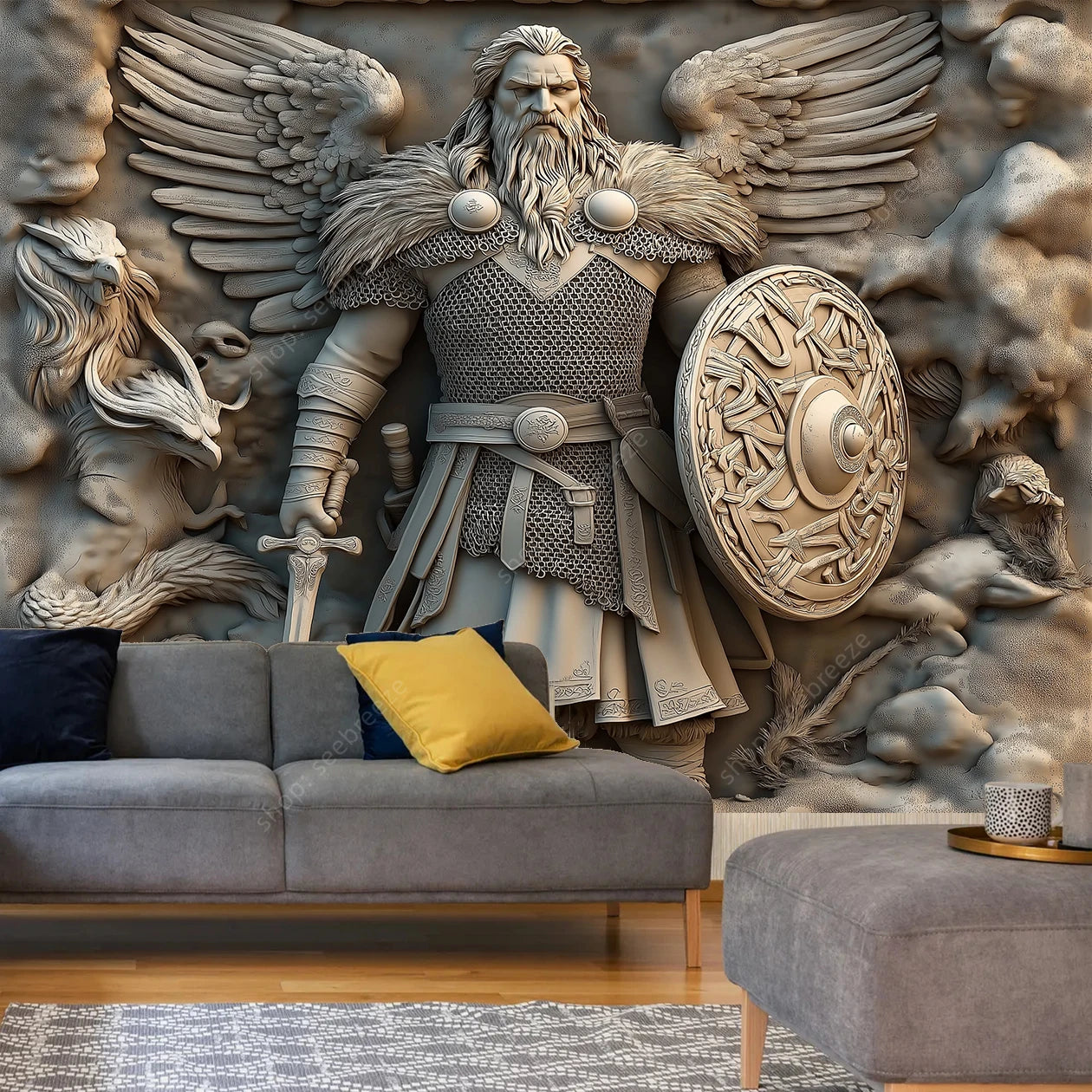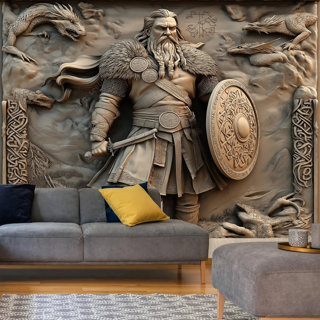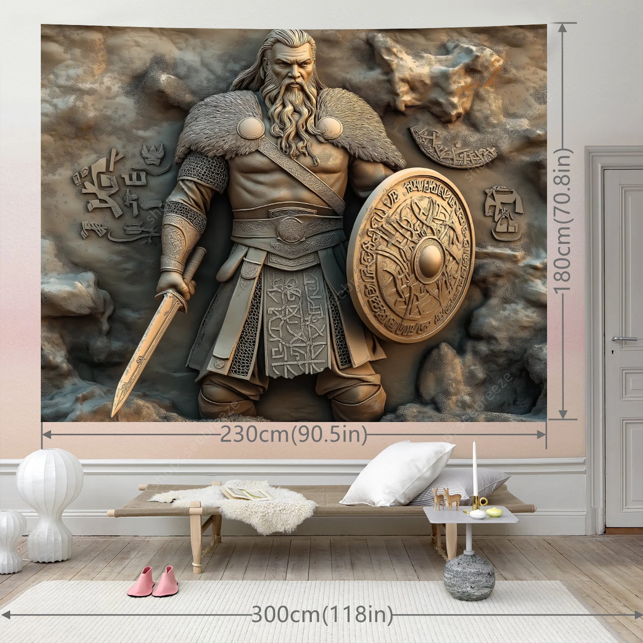 Viking Warrior Tapestry – Norse Mythology Wall Art for Living Room & Bedroom Decor