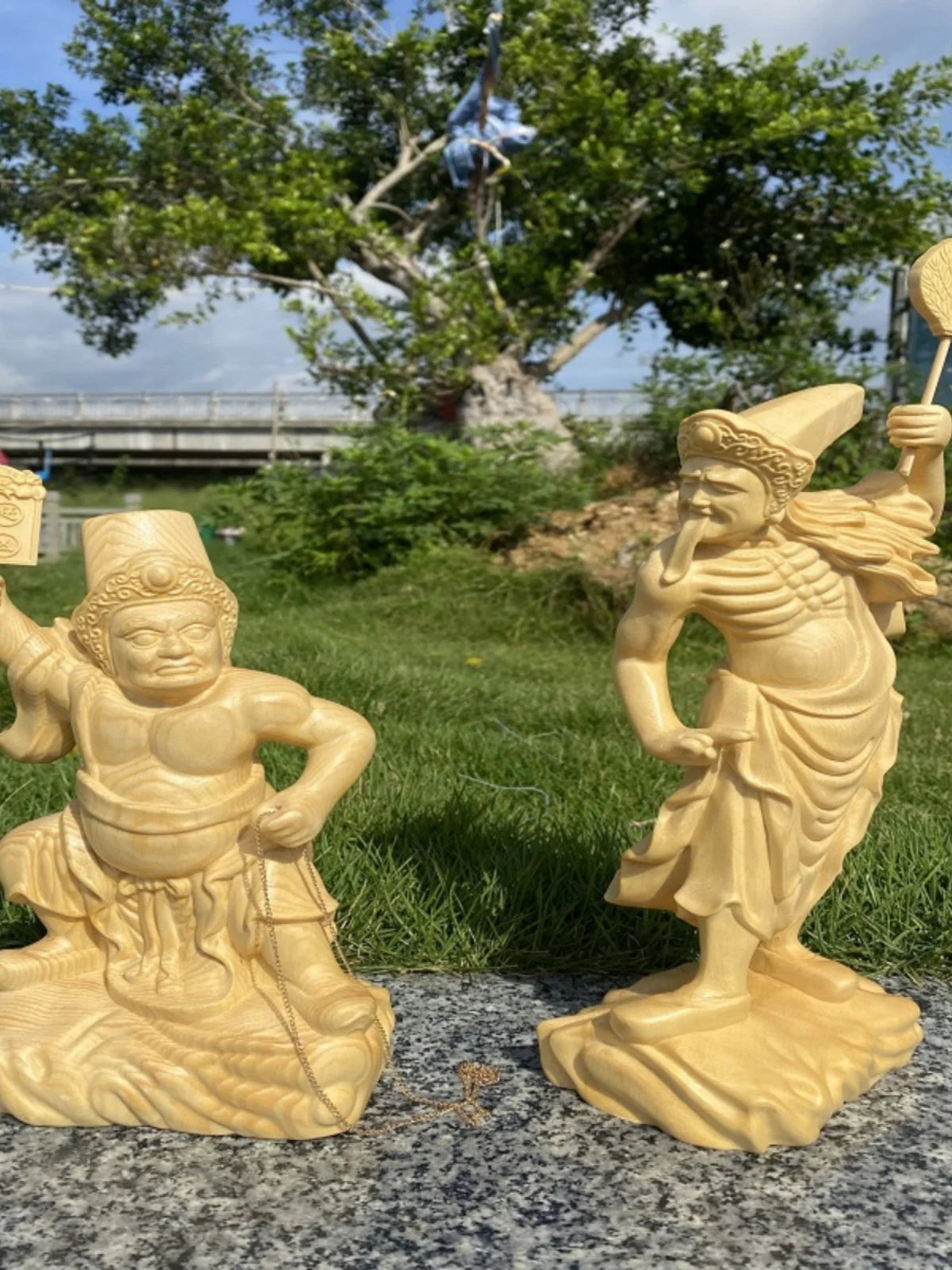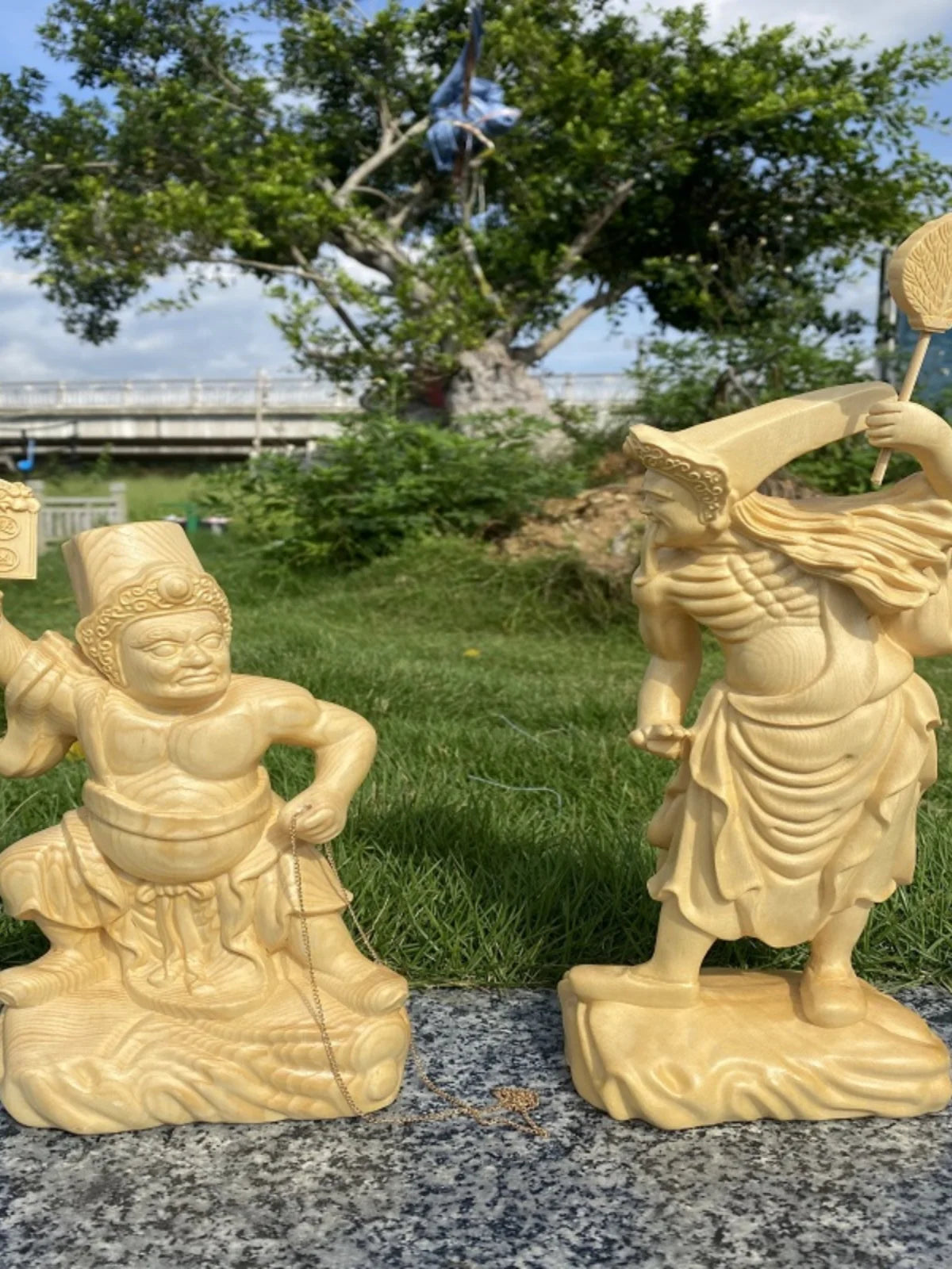 Wooden Heibai Wuchang Guardian Statues – Perfect for Household and Temple Shrine Decor