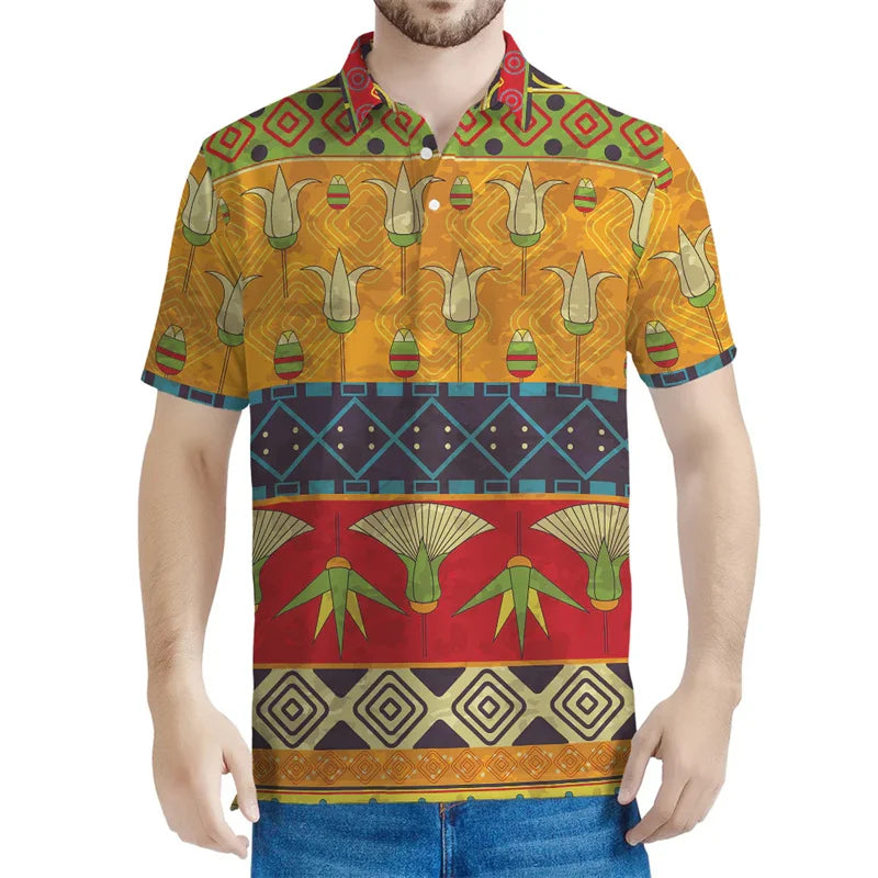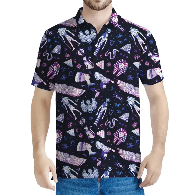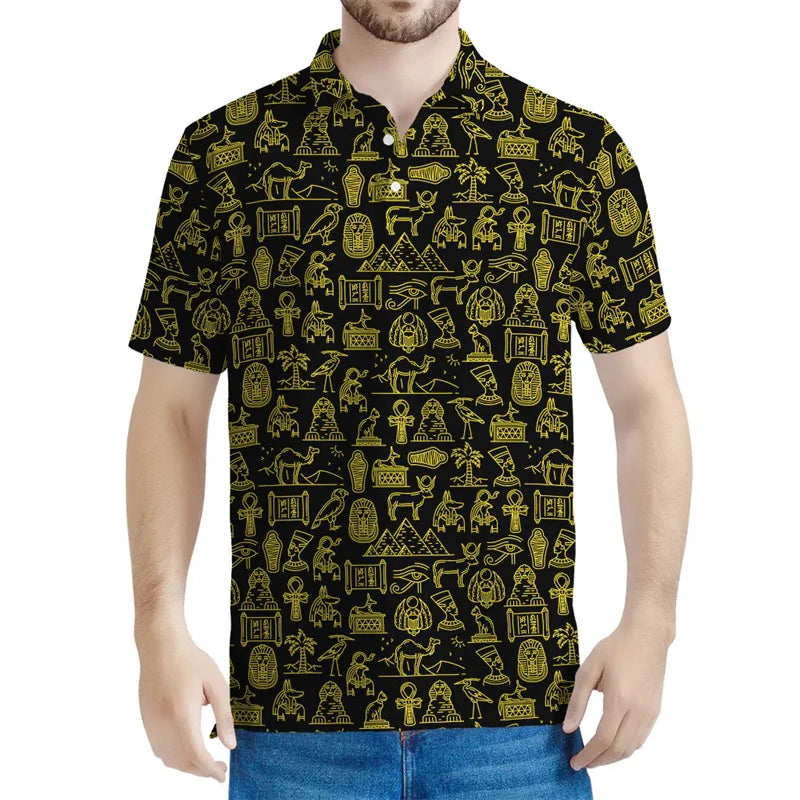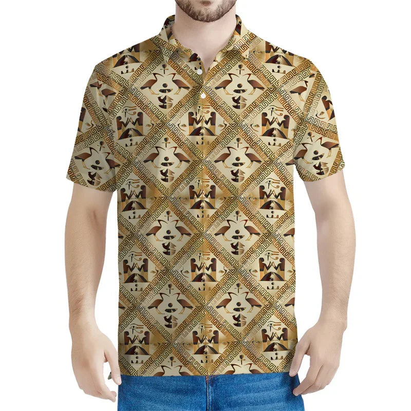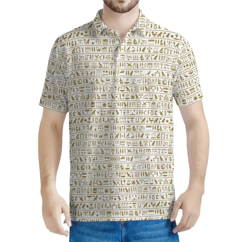 Ancient Egypt Pattern Polo Shirt – Men’s 3D Printed Egyptian Totem Streetwear Tee