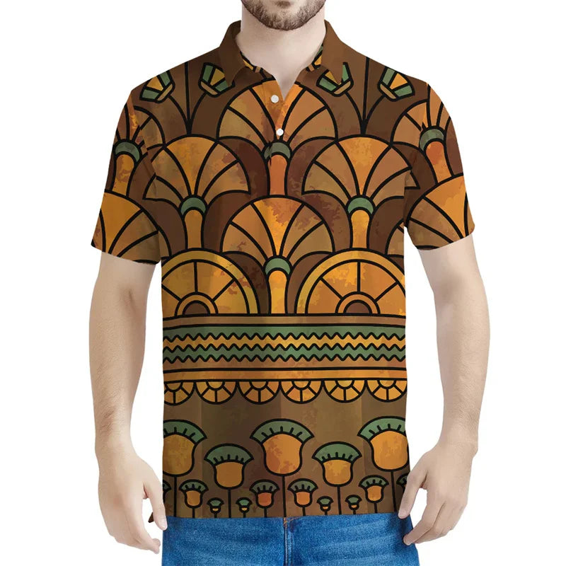 Blend timeless Egyptian artistry with modern streetwear in this 3D printed polo shirt — featuring iconic totem patterns for a stylish, casual look.