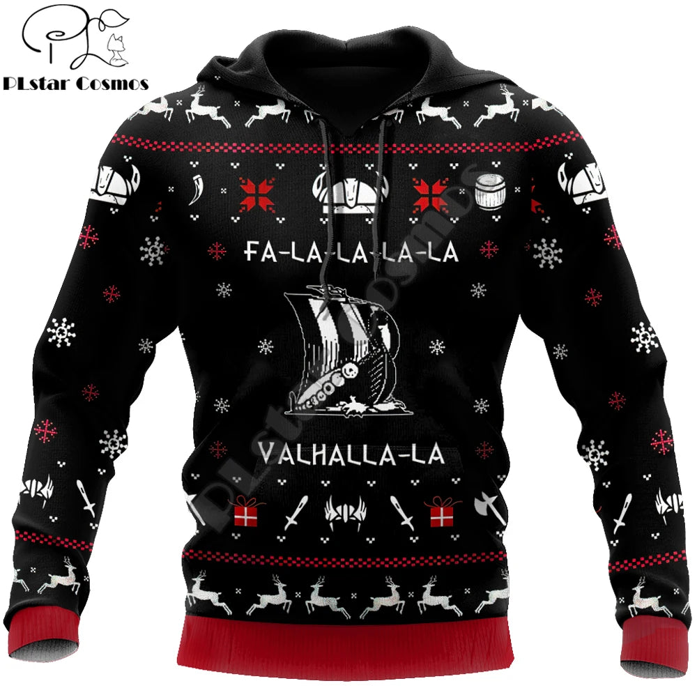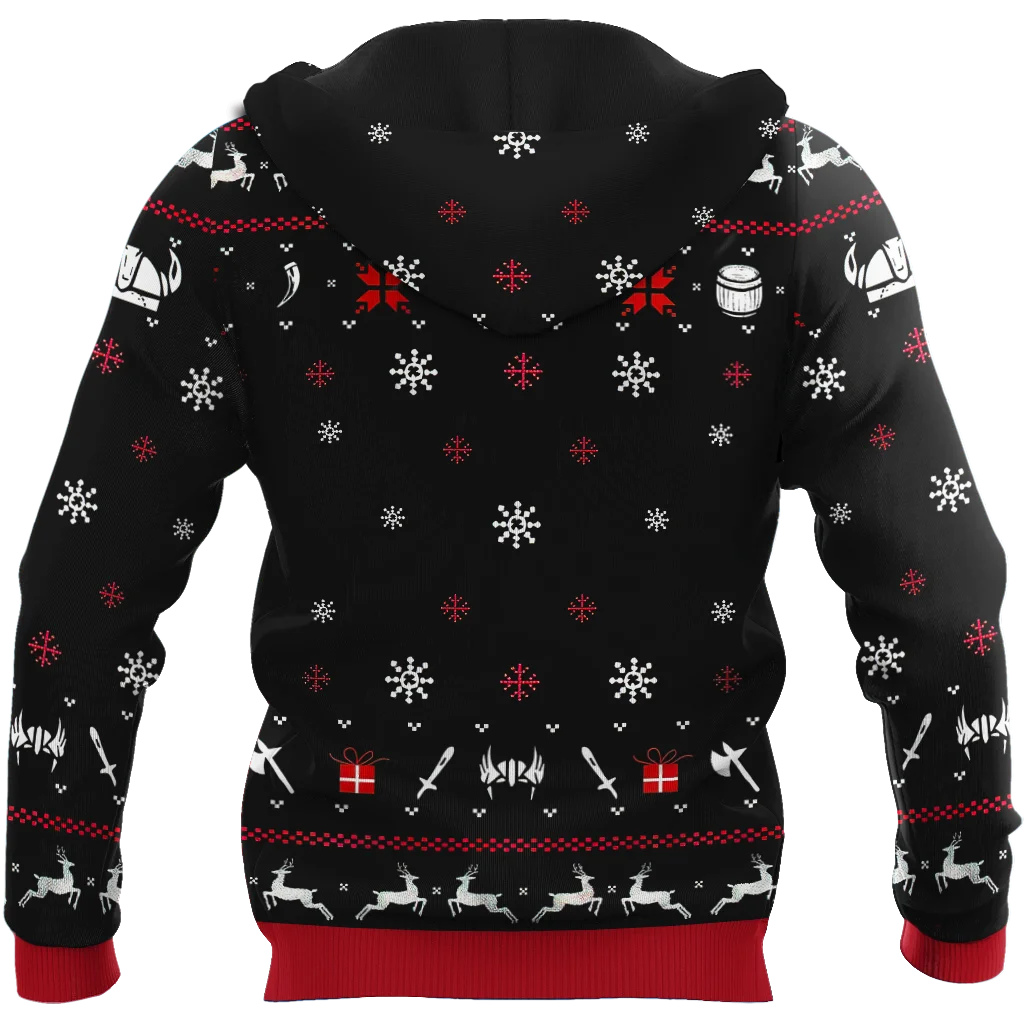 Celebrate the festive season with a twist of Norse mythology in this Christmas Odin tattoo symbol 3D all-over printed hoodie — a cozy, stylish pullover perfect for autumn streetwear and casual wear.