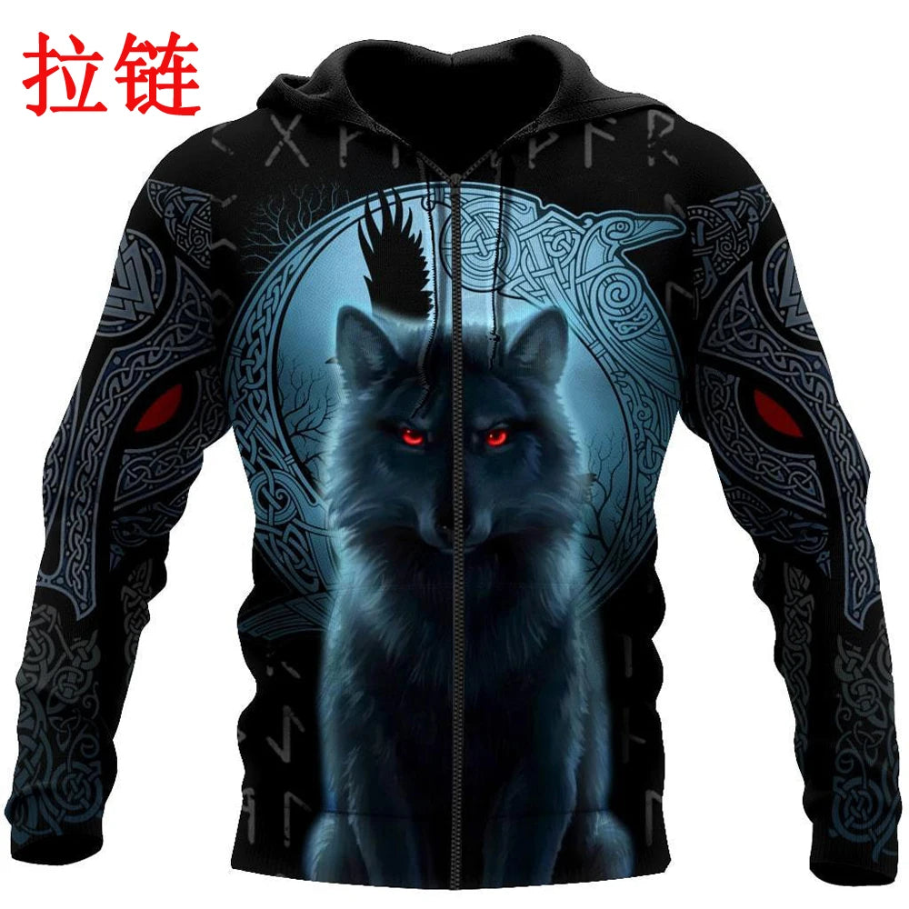 Fenrir Wolf and Raven Tattoo 3D Printed Hoodie – Unisex Deluxe Streetwear Zip-Up