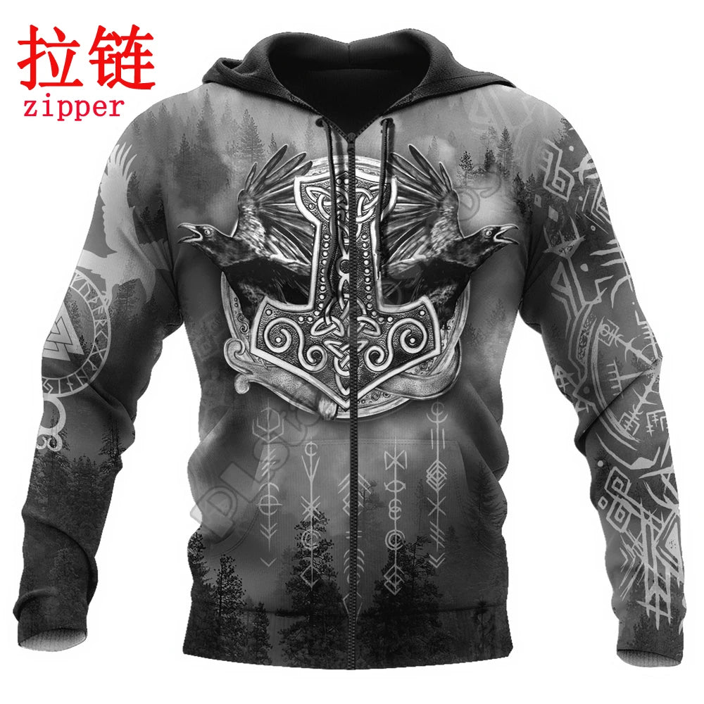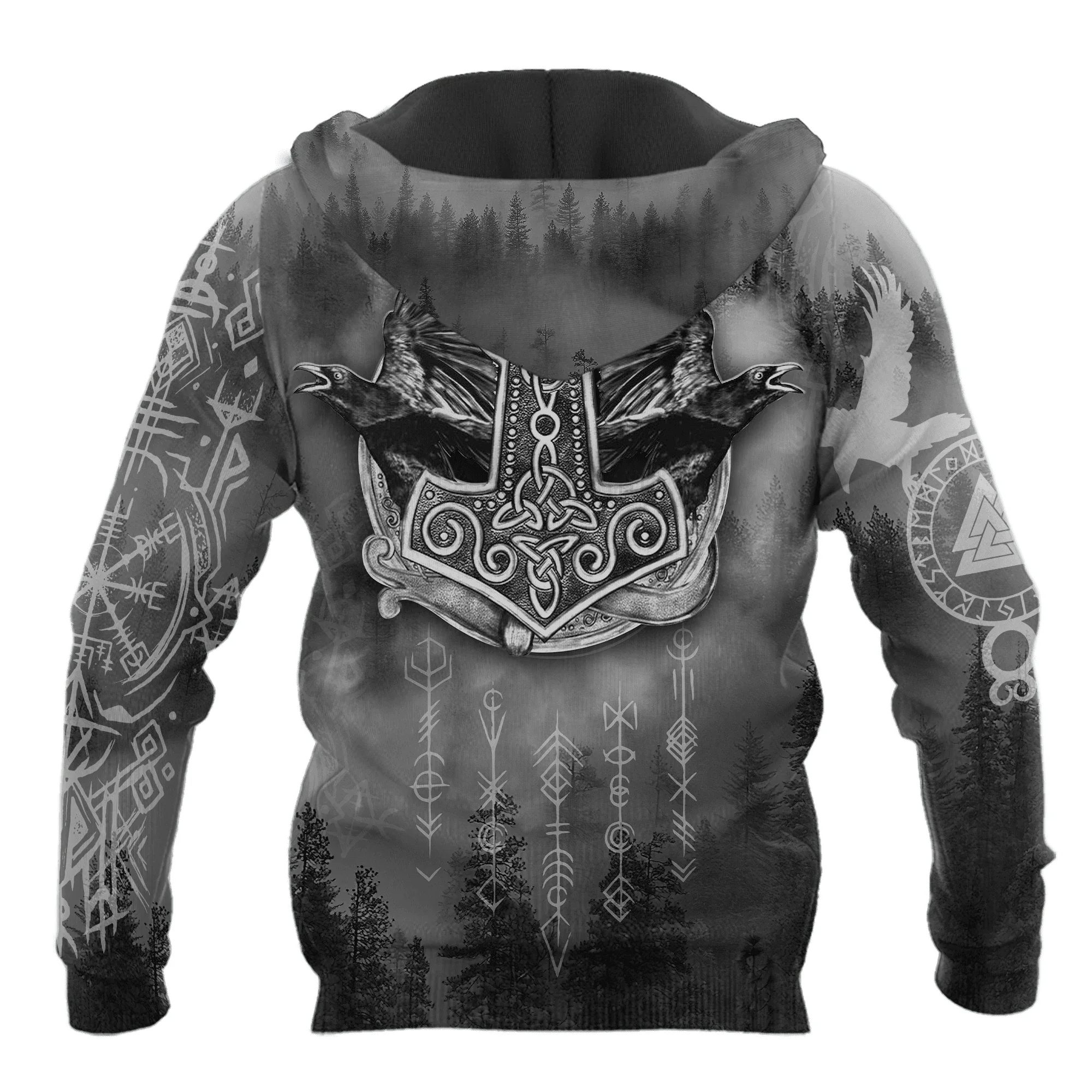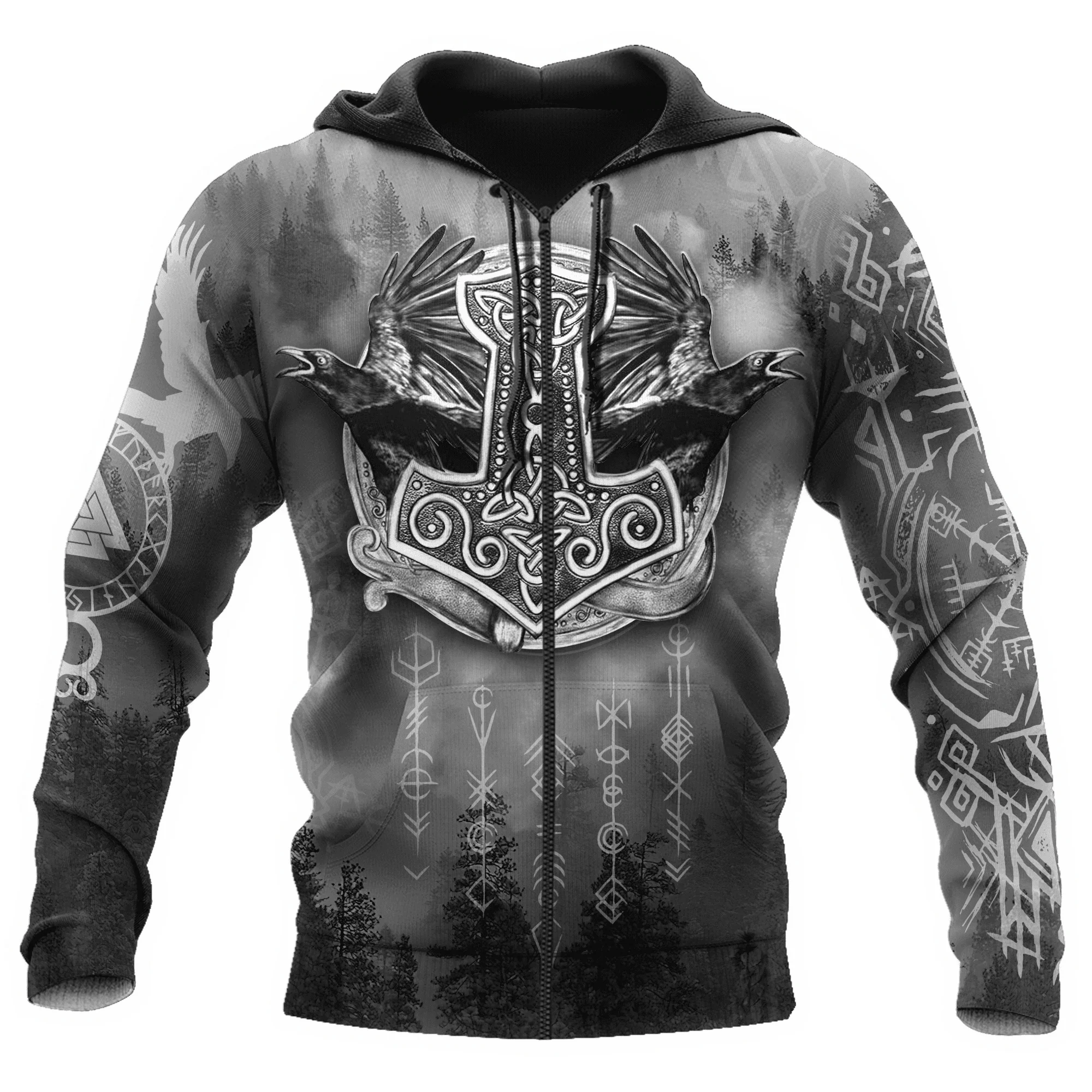 Hammer Mjolnir Odin Raven Tattoo 3D All-Over Printed Hoodie – Unisex Men’s Zip-Up Tracksuit Sweatshirt