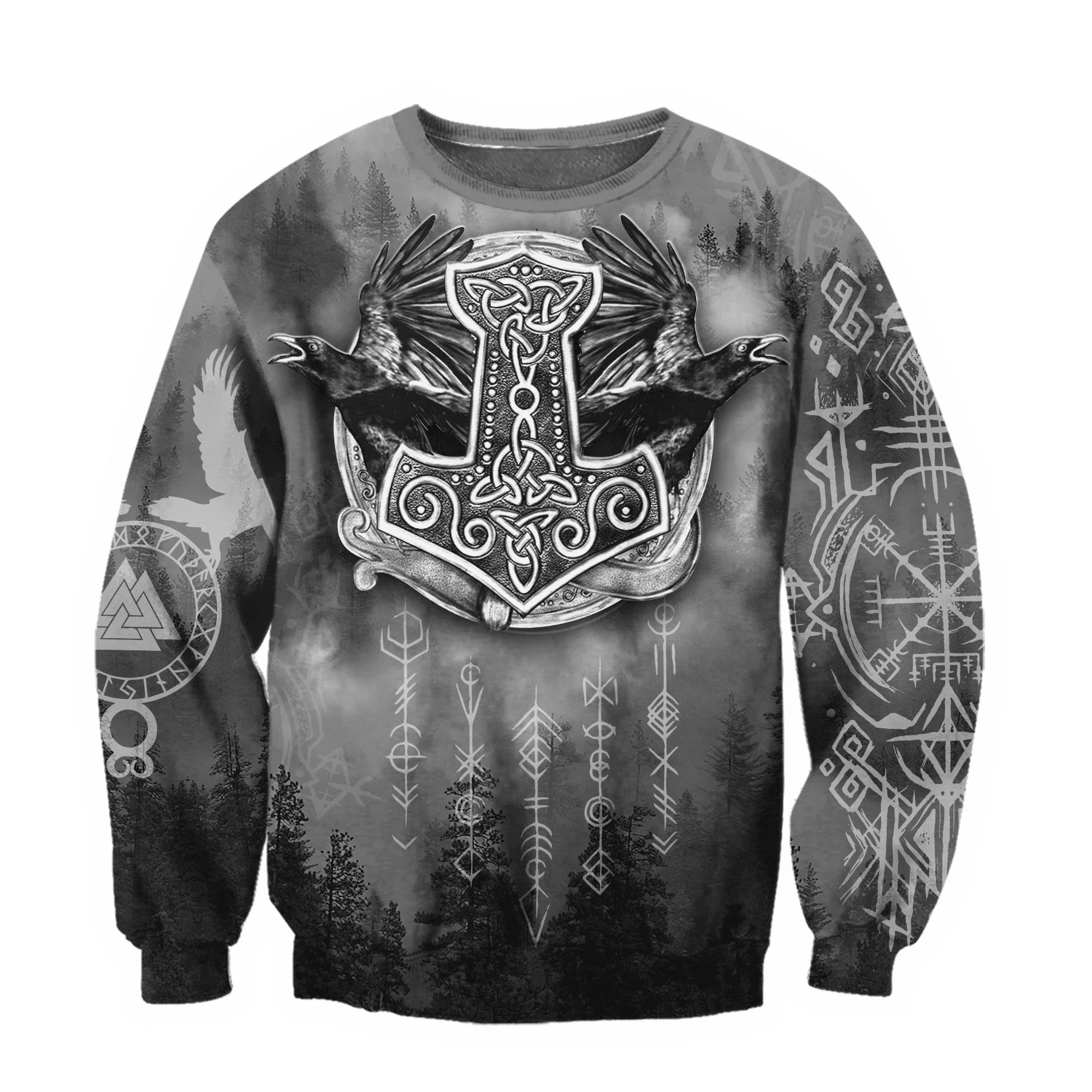 Wear the power of the gods — get your Hammer Mjolnir Odin Raven 3D printed hoodie today!