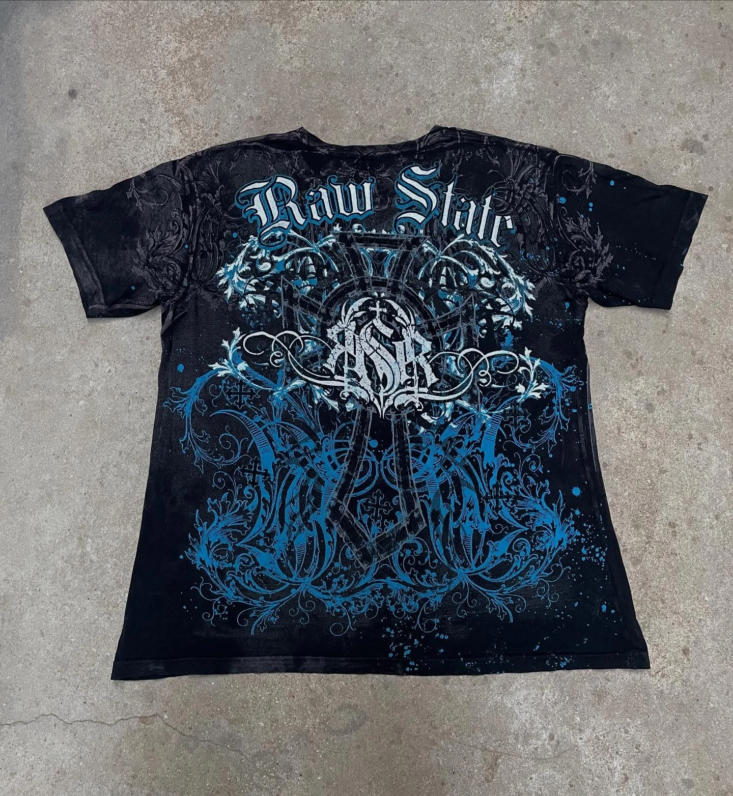 Make a statement with attitude — grab your Konflic Archangel tee and own the street in Y2K cyber goth style.