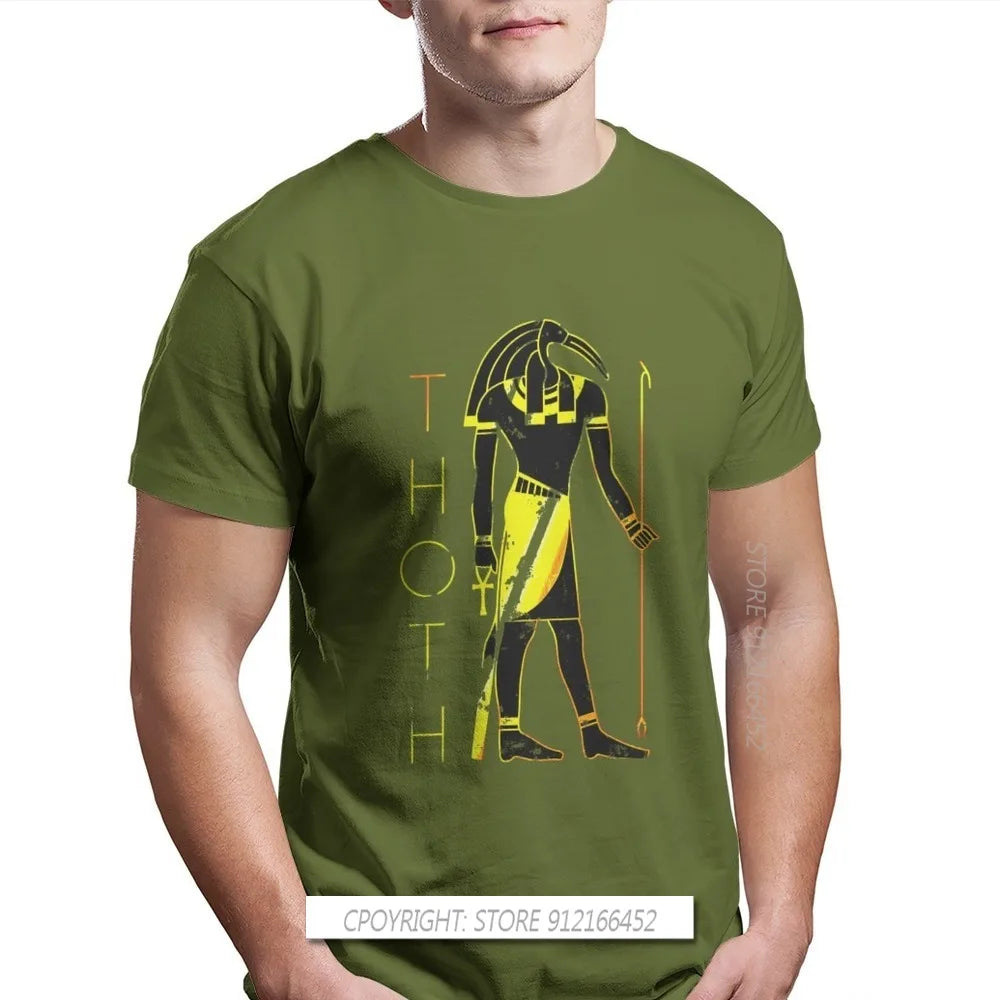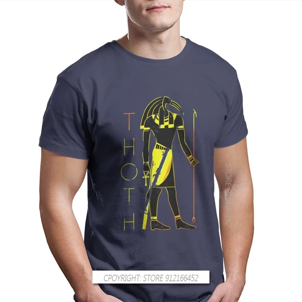 • Bold graphic prints showcasing iconic Egyptian gods: Atum, Horus, Osiris, and Thoth