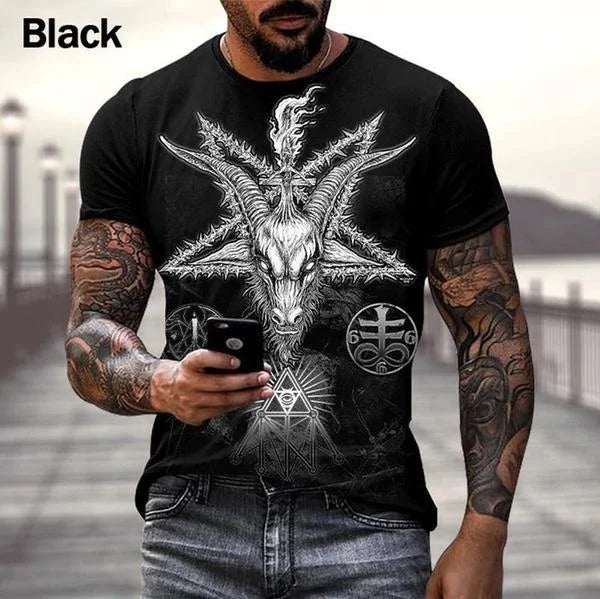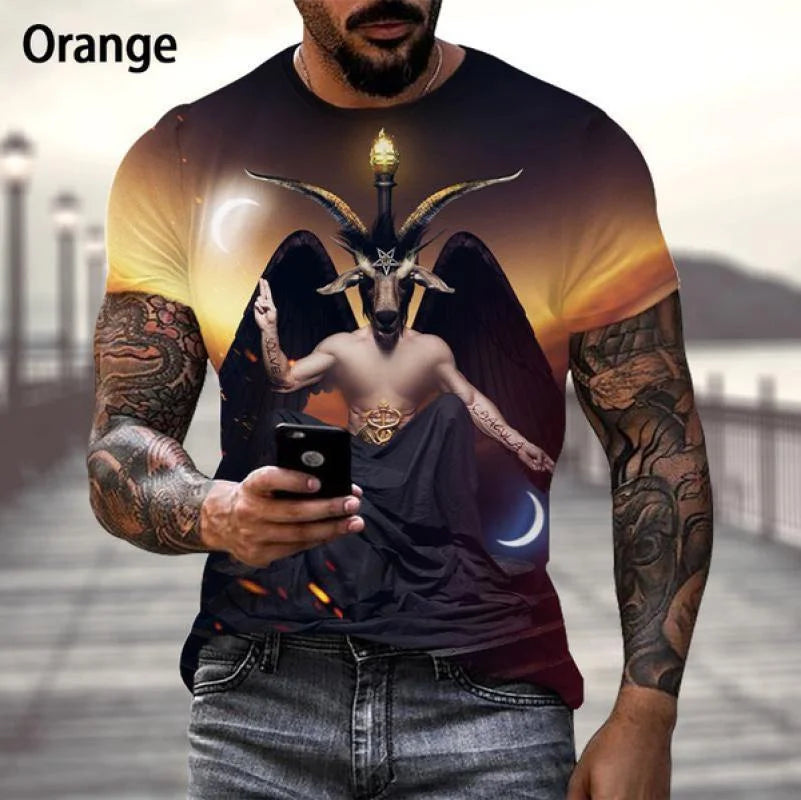Men’s Streetwear T-Shirt – Baphomet 3D Art Print Graphic Tee